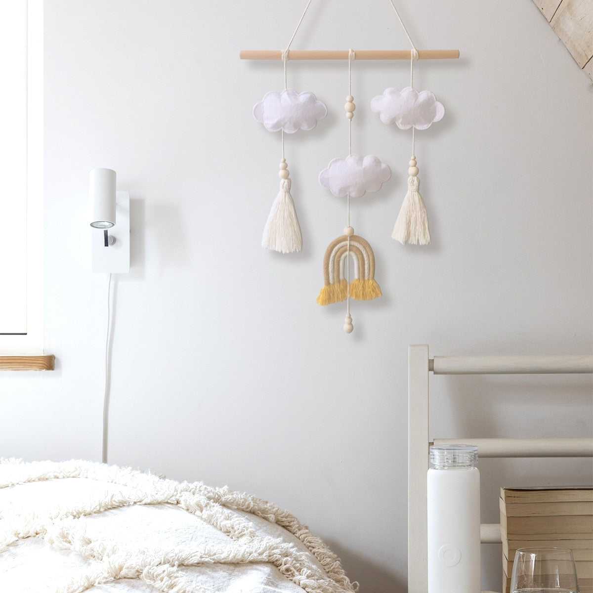 INS Nordic Cute Felt Cloud Hanging Ornament Wooden Stick Tassel Pendant Baby Kids Room Decoration Nursery Wall Decor Photo Props