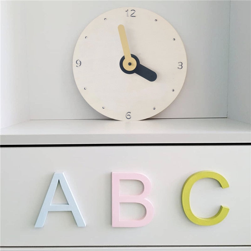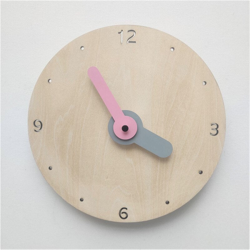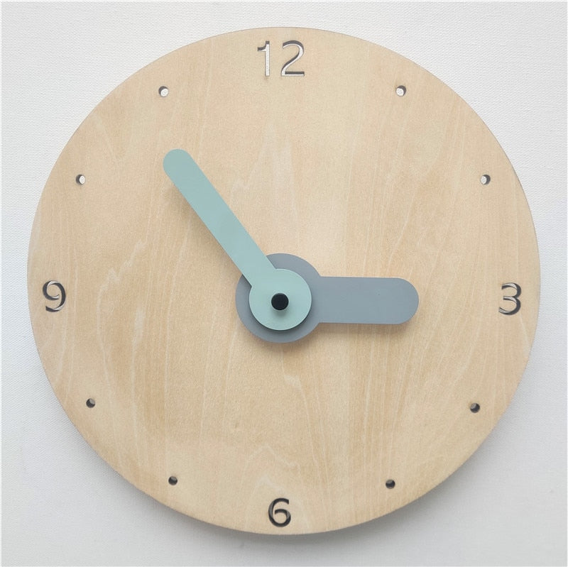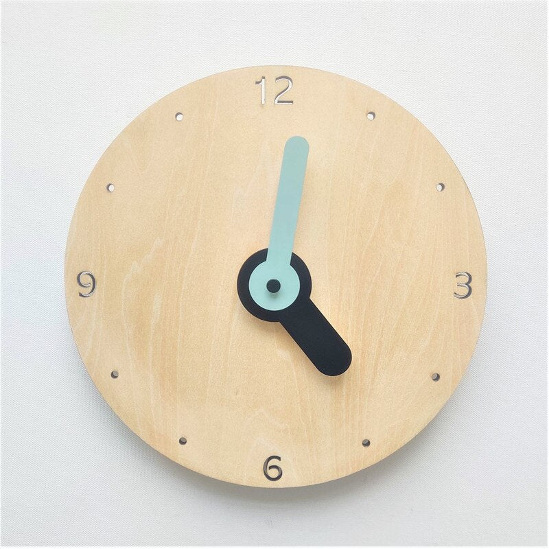INS Nordic Minimalist Wood Wall Clock Baby Kids Room Decorations Figurines Wooden Mute Clocks Living Room Wall Decor Photo Props