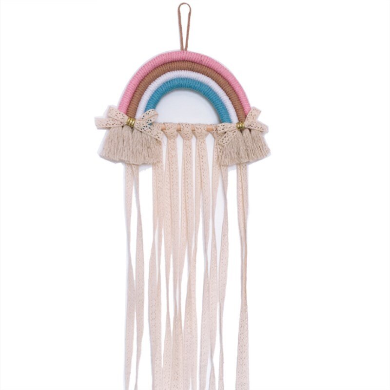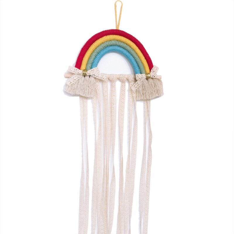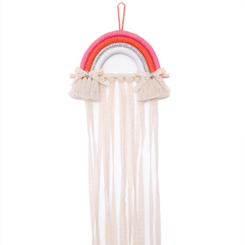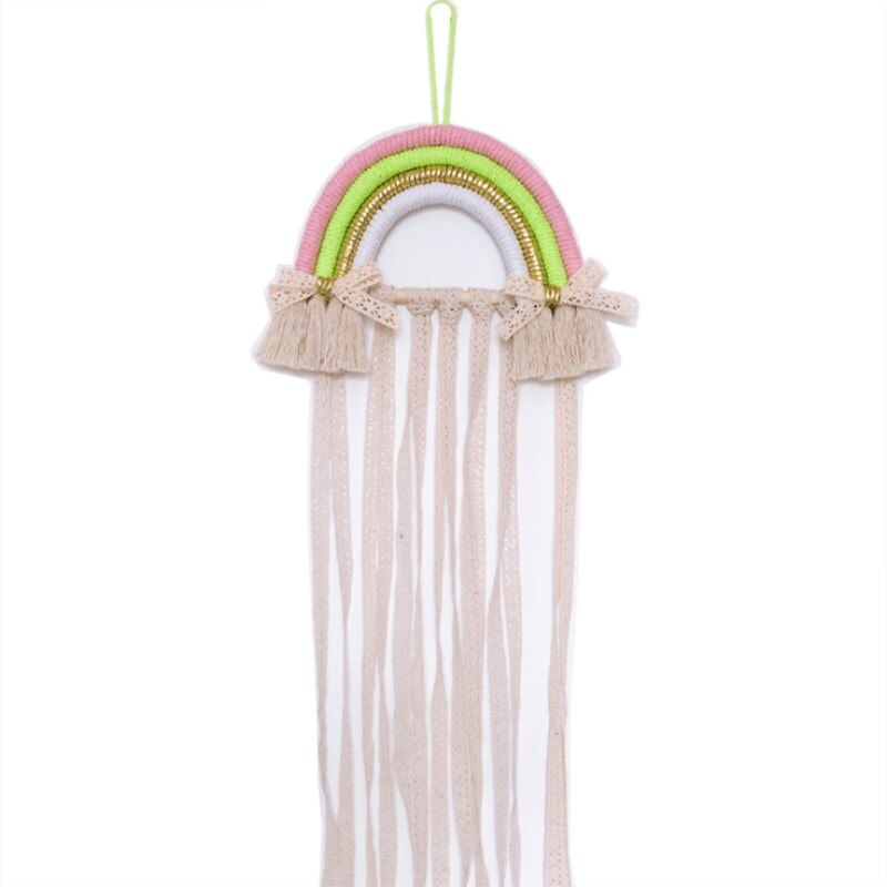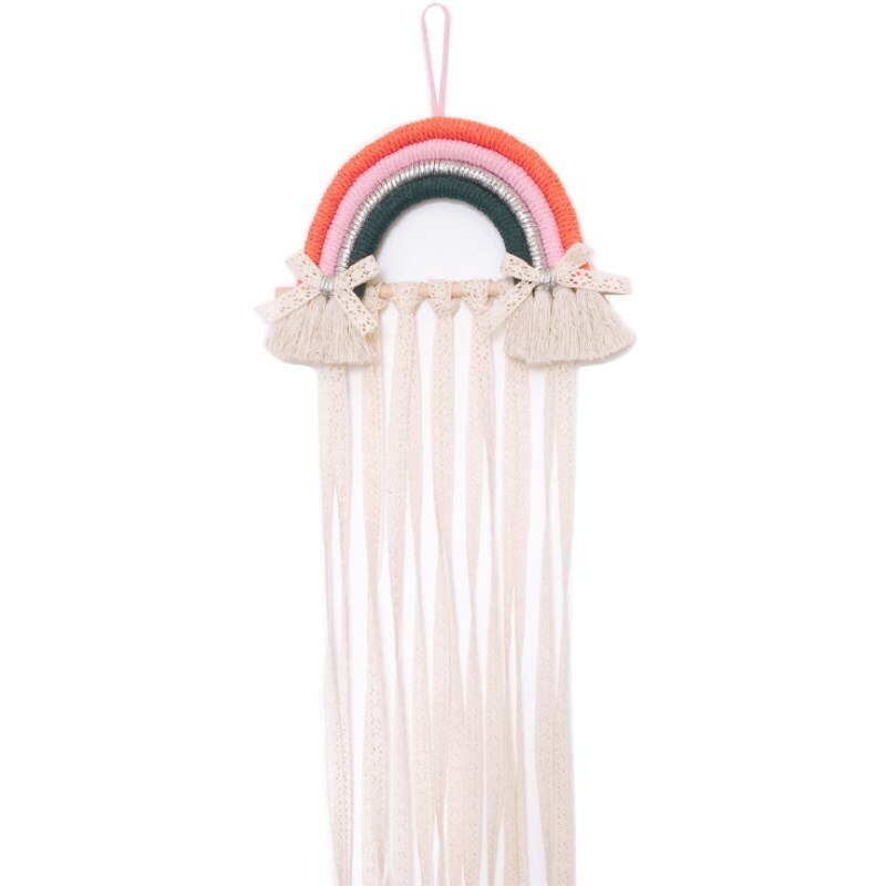 INS Nordic Rainbow Tassel Wall Hanging Ornaments Hair Bows Storage Belt Girls Room Decoration Hair Clips Hanger Organizer Strip