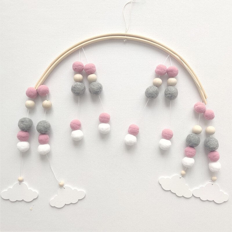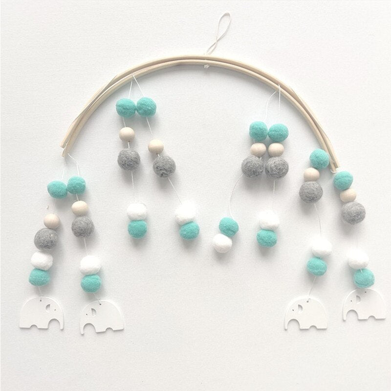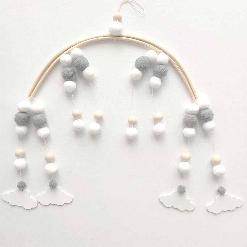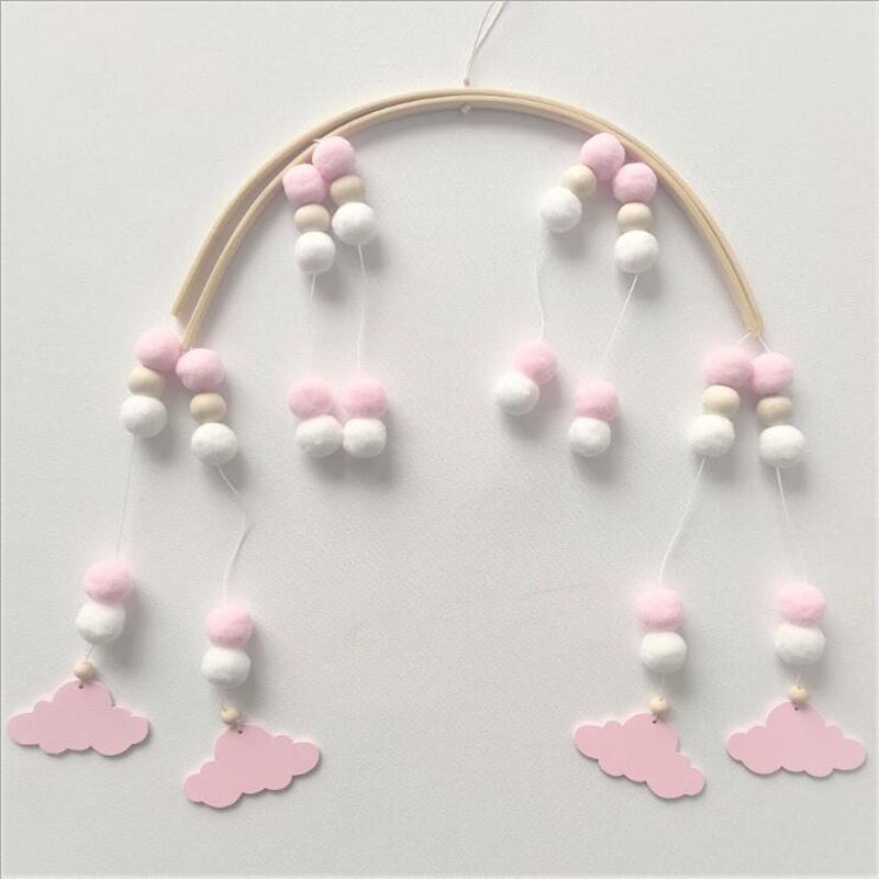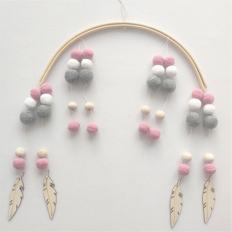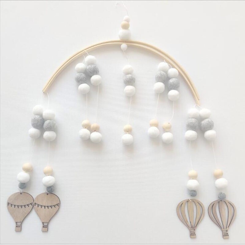 INS Nordic Wooden Beads Wind Chimes with Wool Balls Newborn Baby Bed Hanging Windbell Crib Tent Kids Room Decorations Ornaments