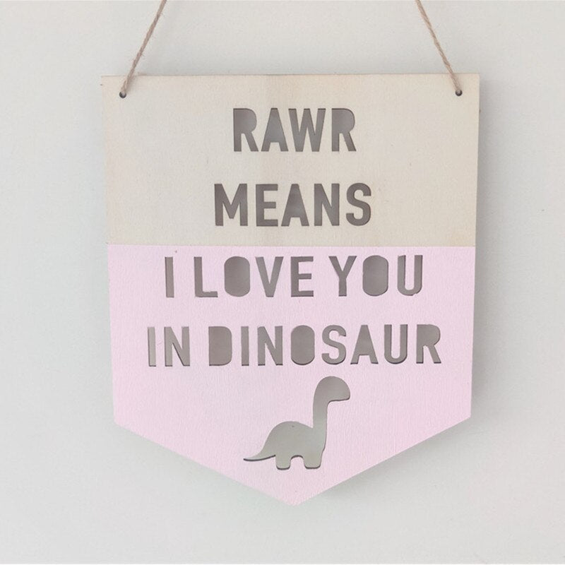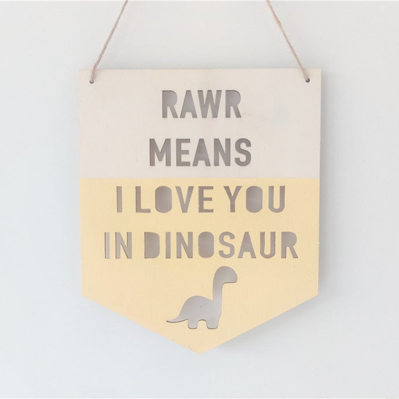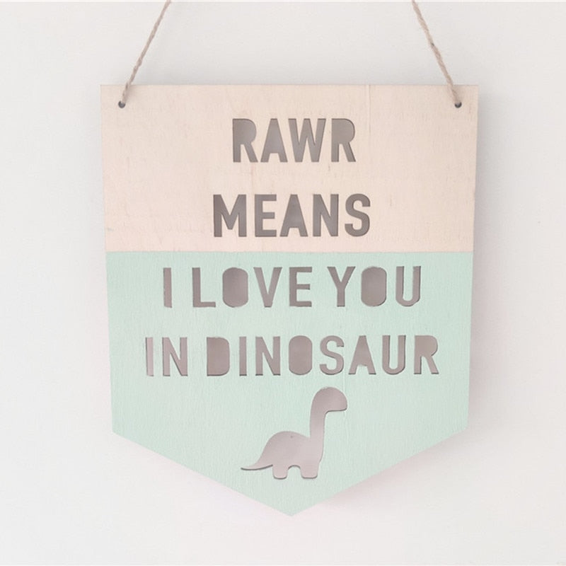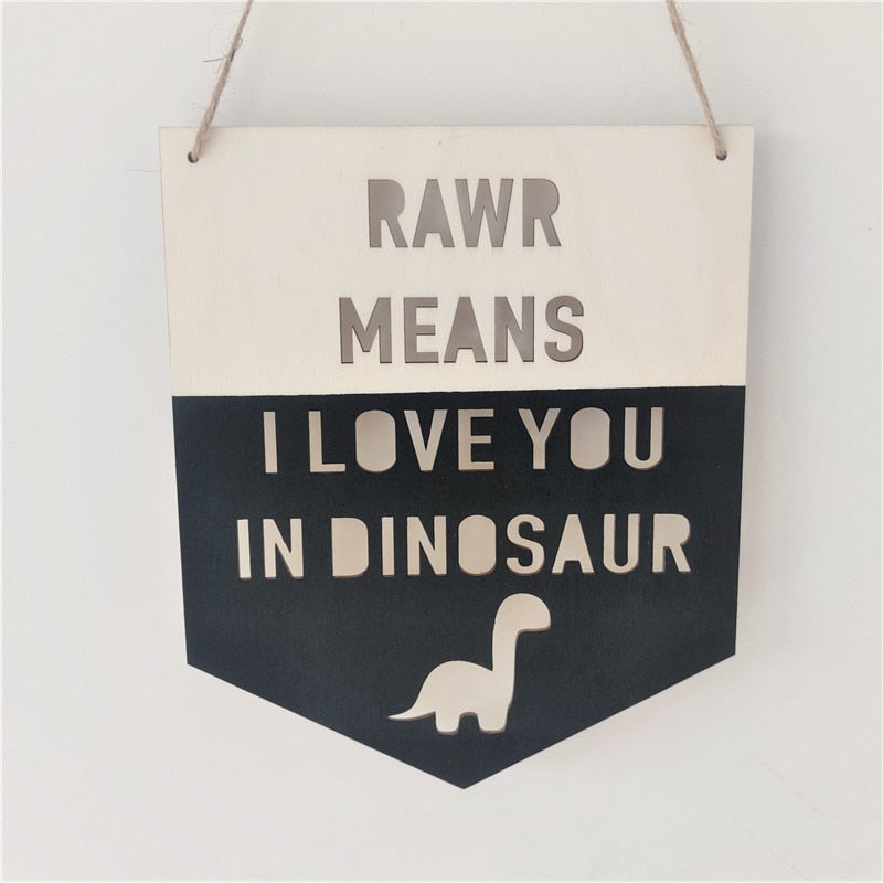 INS Wooden Dinosaur Positive Slogan Banner Garland Nordic Kids Room Decoration Ornament Wall Hanging Nursery Decor Photo Props