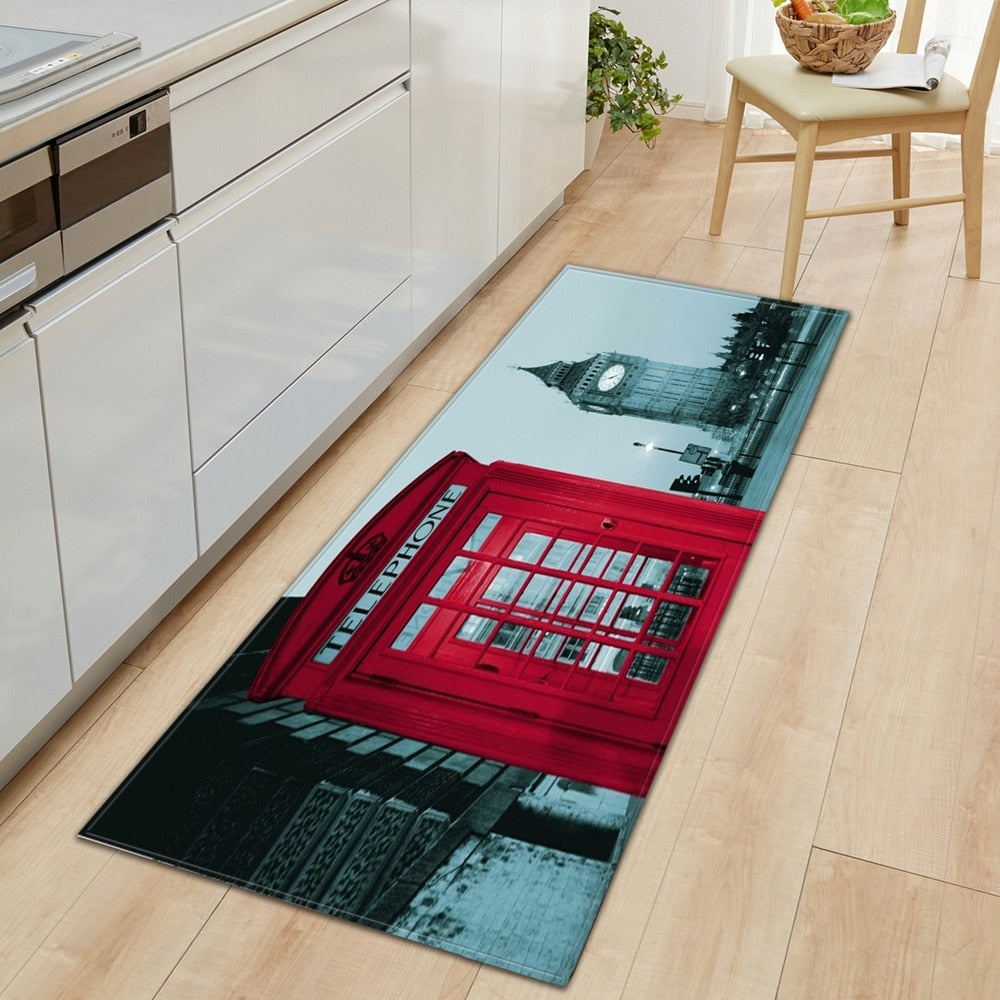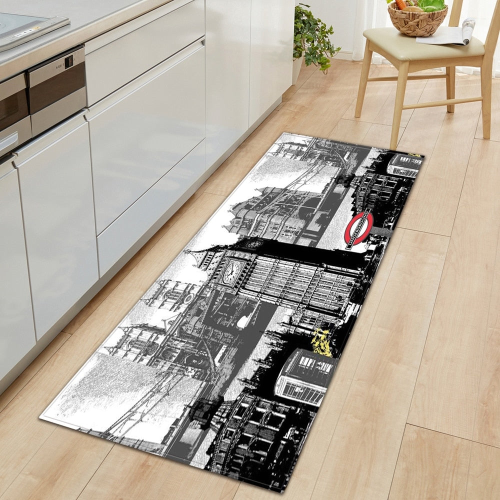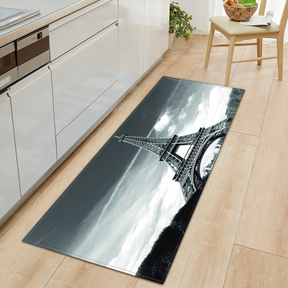 Kitchen Carpet Home Entrance Doormat Bedroom Bedside Eiffel Tower Pattern Decor Floor Rug Hallway Balcony Bathroom Anti-Slip Mat