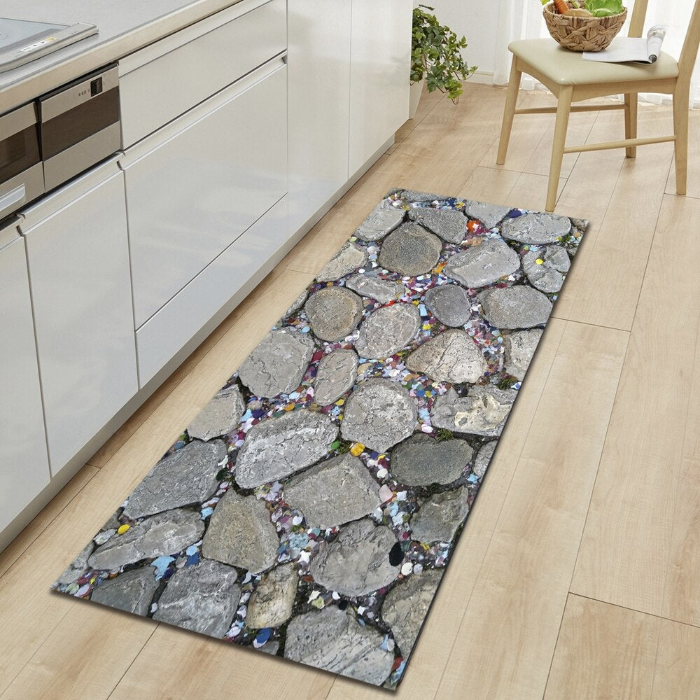 Kitchen Mat Entrance Doormat Cobblestone Pattern Home Bedroom Bedside Floor Decoration Carpet Bath Balcony Hallway Anti-Slip Rug