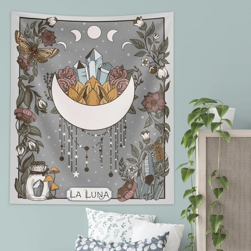 La Luna Tapestry Wall Hanging Moon  Phase Tarot Card psychedelic scene home decoration Witchy Nature Hanging Wall Art sheets