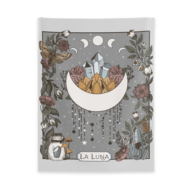 La Luna Tapestry Wall Hanging Moon Phase Tarot Card psychedelic scene home decoration Witchy Nature Hanging Wall Art sheets
