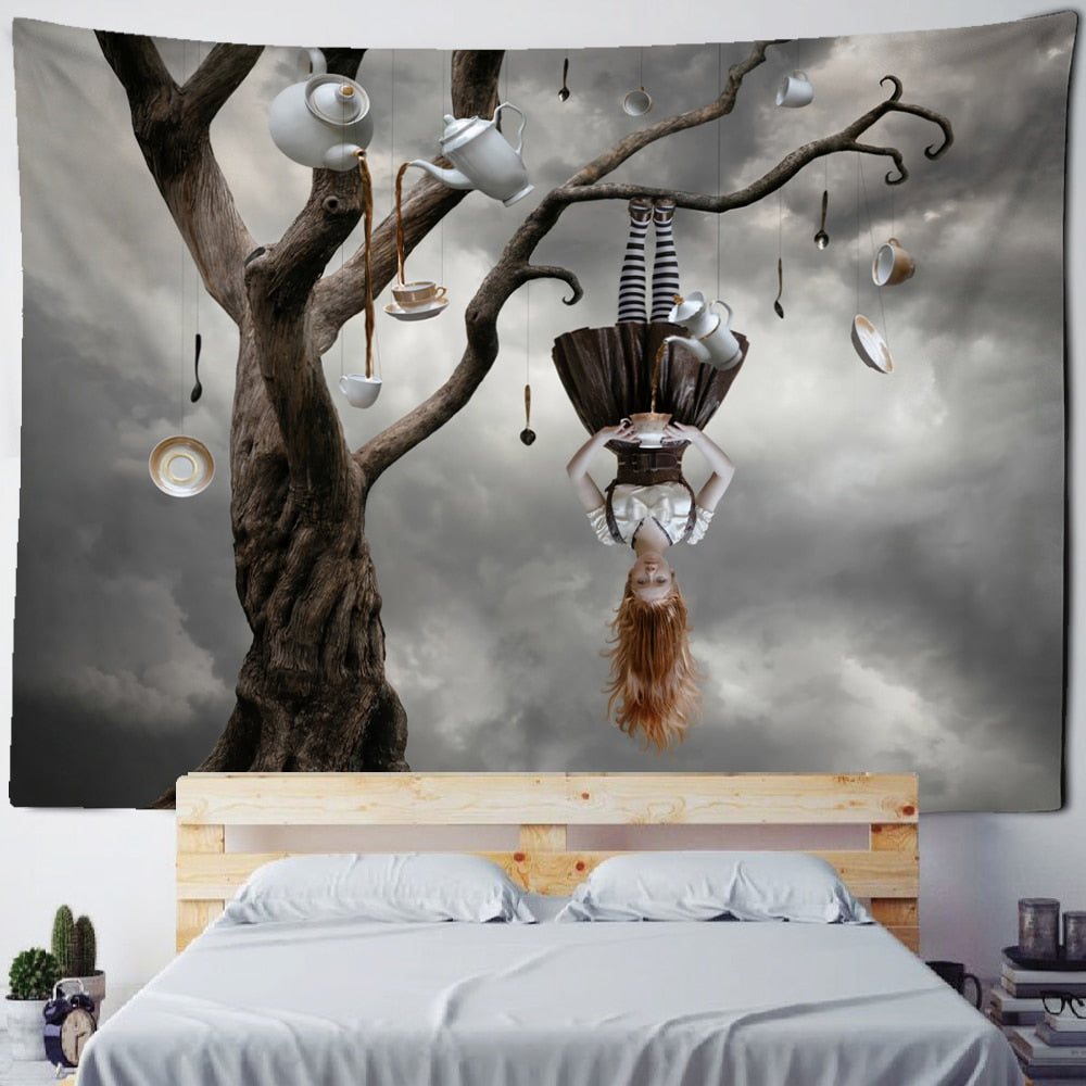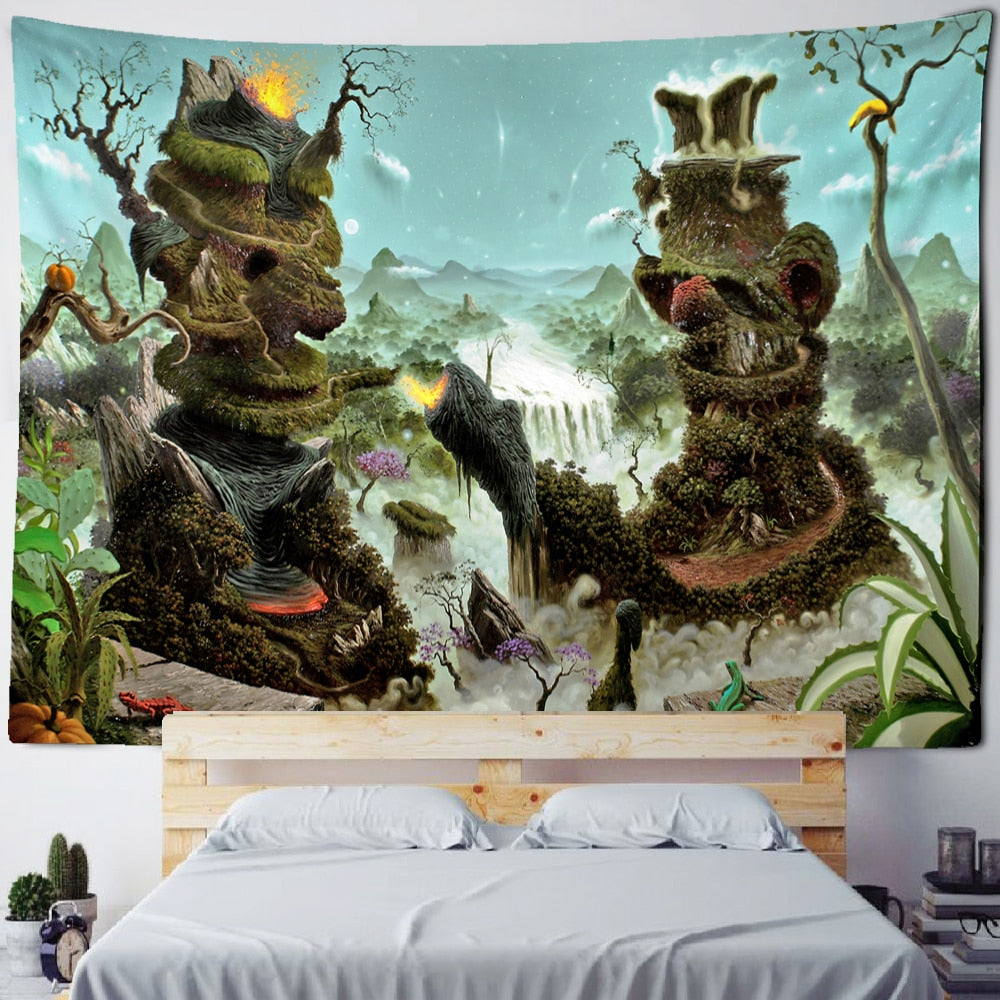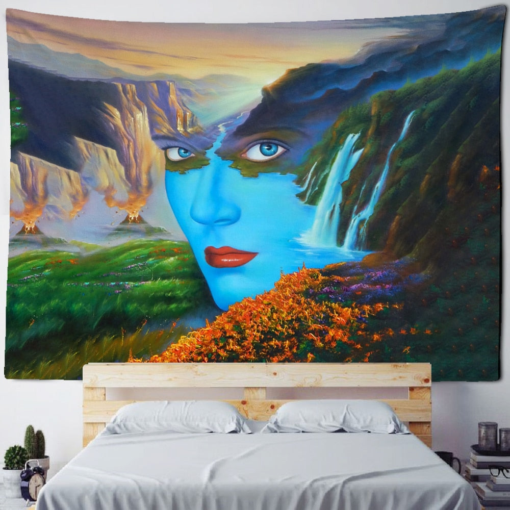 Landscape Woman Tapestry Wall Hanging Psychedelic Witchcraft Natural Mountains And Rivers Ink Painting Home Decor