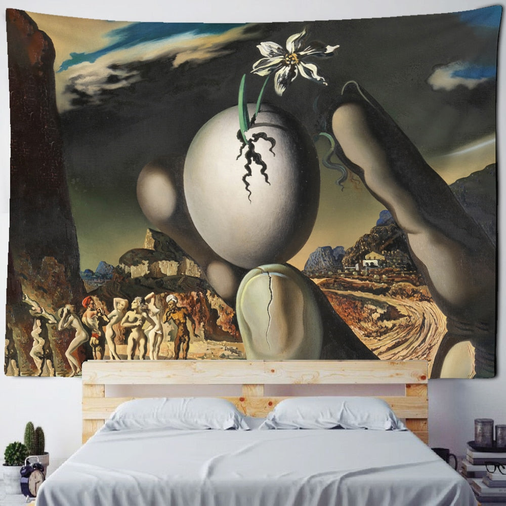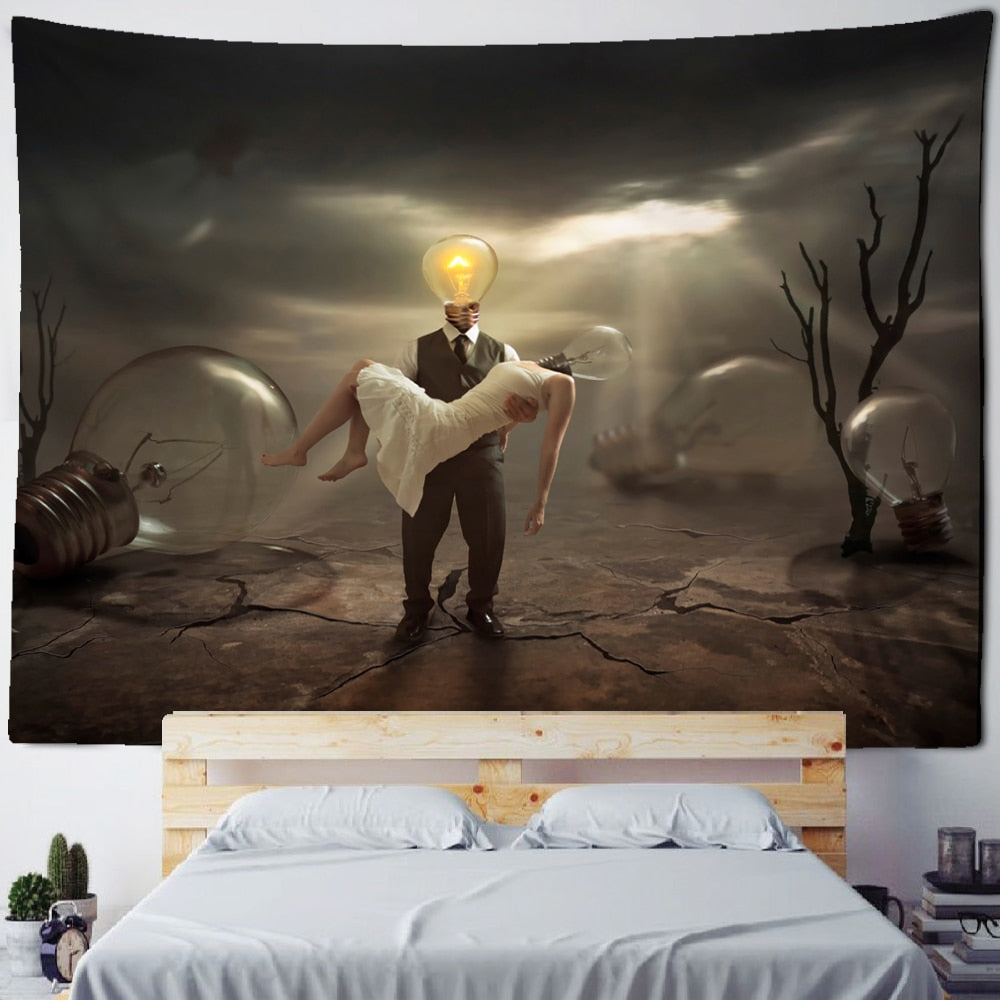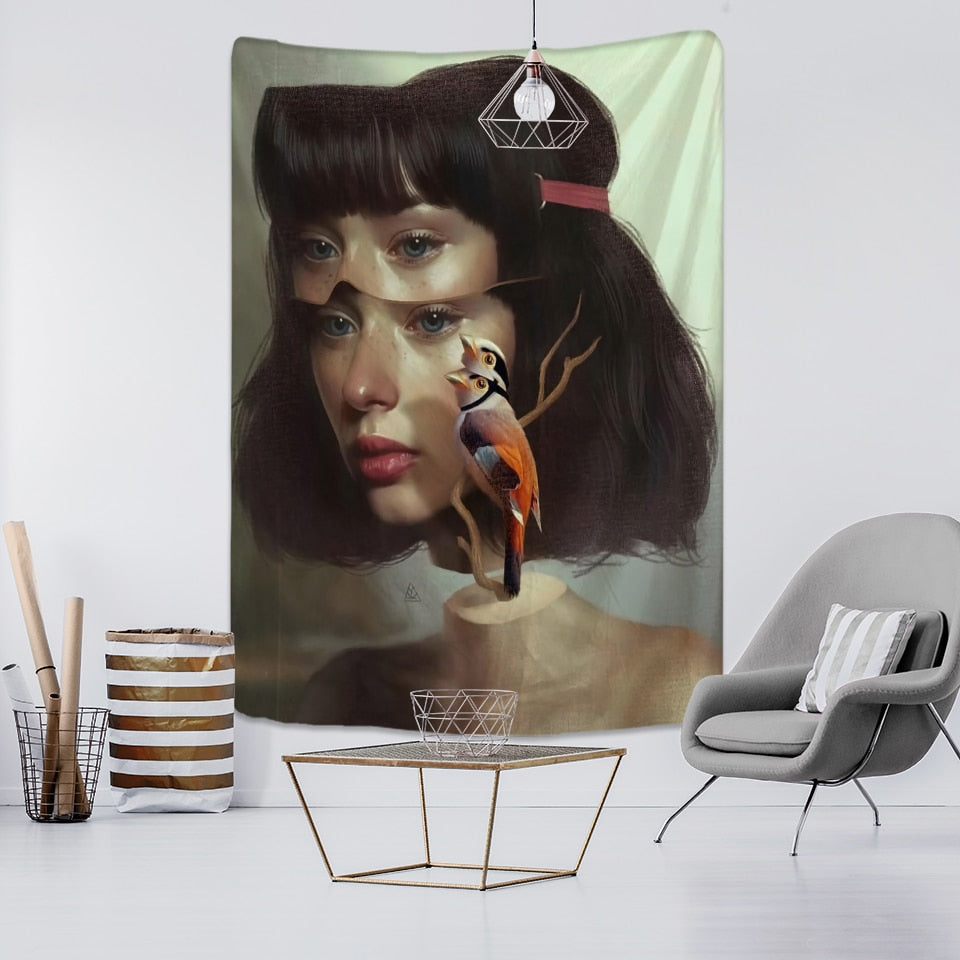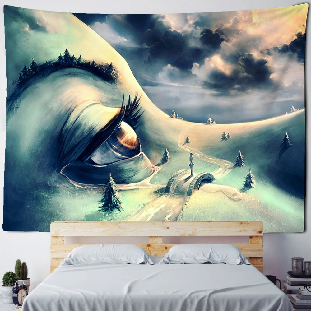 Landscape Woman Tapestry Wall Hanging Psychedelic Witchcraft Natural Mountains And Rivers Ink Painting Home Decor