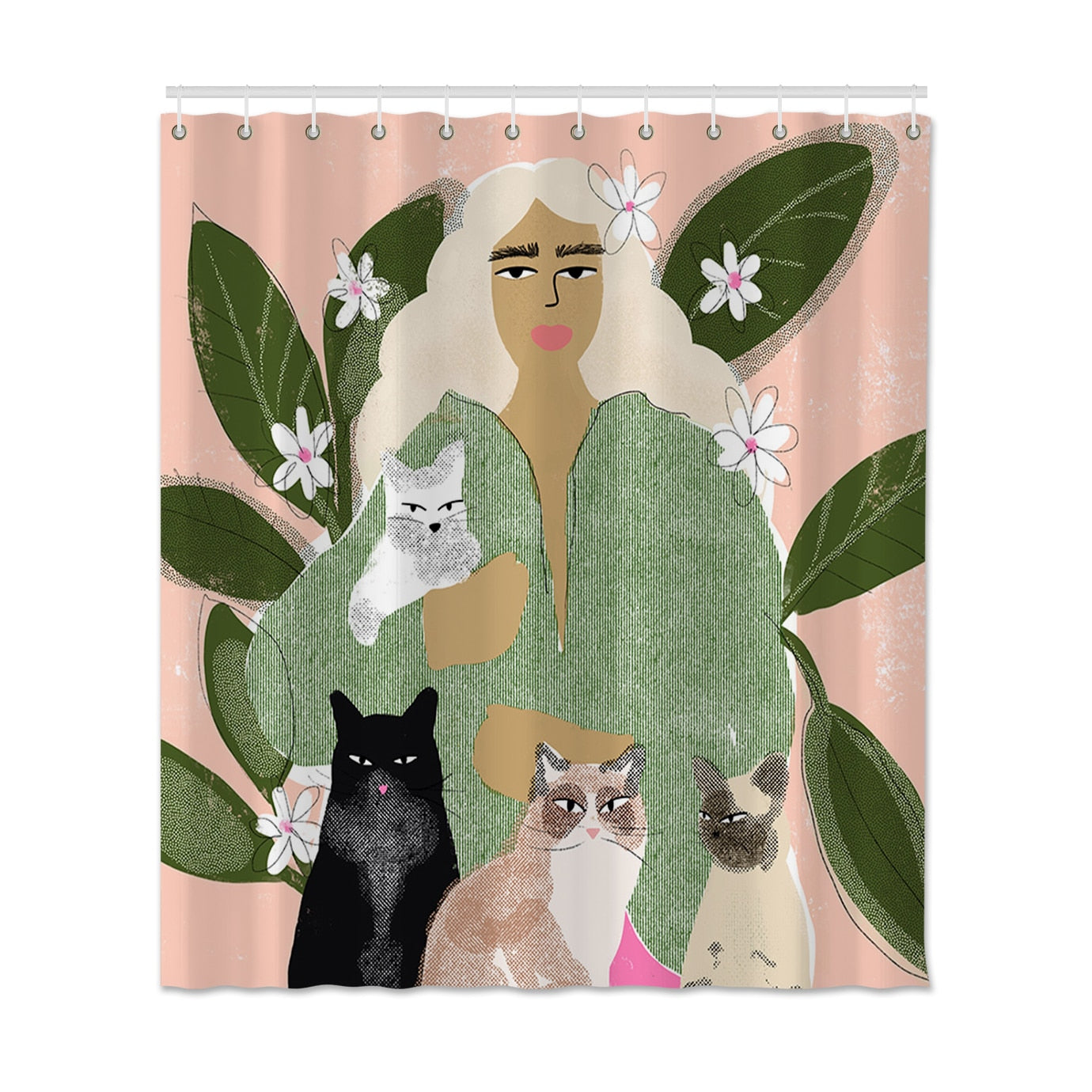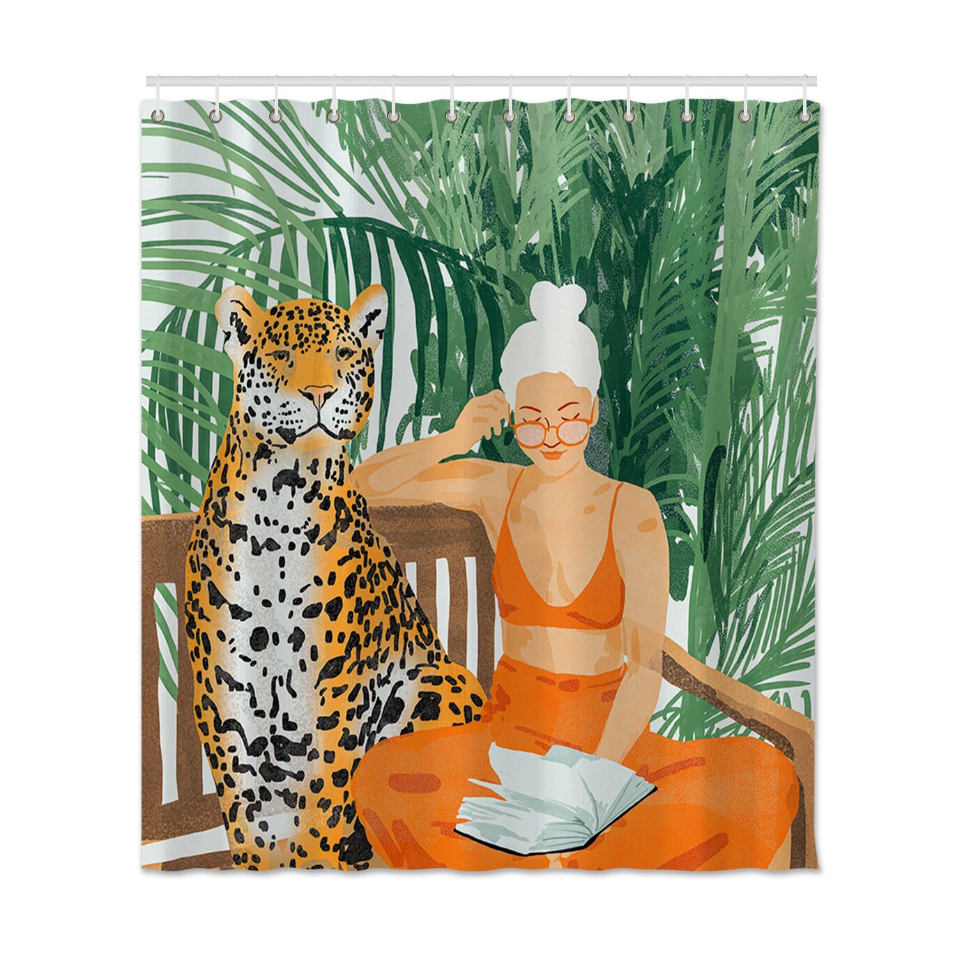 Leaves Swim Printed Shower Curtain Creative Waterproof Bath Shower Curtain Polyester Fabric Bathroom Shower Curtain With Hooks