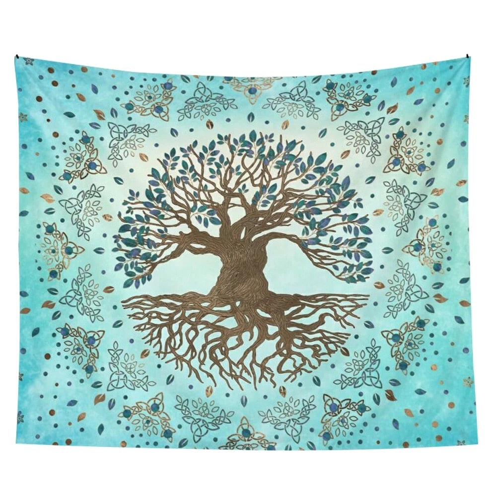 Life Tree Tapestry Psychedelic Blue Teal Wall Covering Mandala Home Decor Wall Blanket Tapestry Bohemian Bedroom Wall Hanging