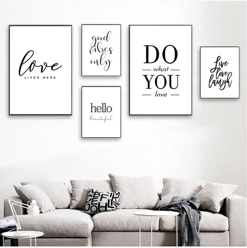 Live Love Laugh Inspiring Quotes Wall Art Canvas Painting Black White Wall Poster Prints For Living Room Modern Home Decor AL132
