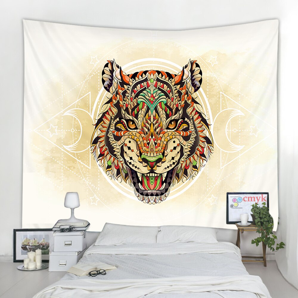Mandala Tapestry Animal Indian Elephant Tiger Eagle Pattern Wall Hanging Mat Beach Towel Blanket