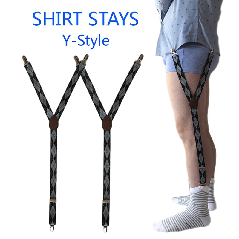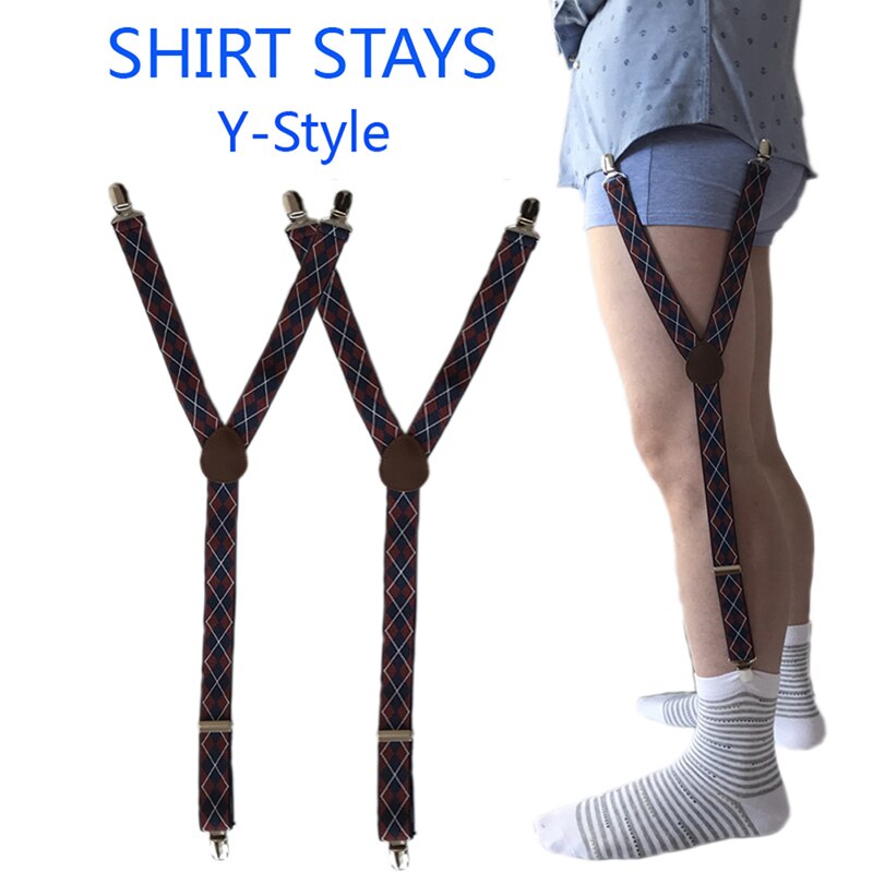 Mens Y Shape Adjustable Elastic Shirt Holders Straps Sock Non-slip Clamps Leg Suspenders Fashion Shirt Stays Garters