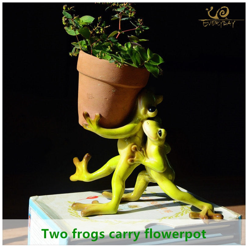 Mini Plant Pot with Cut Frog Flower Pot Fairy Garden Animal Frog Succulent Pot Outdoor Decoration Clay Flowerpot