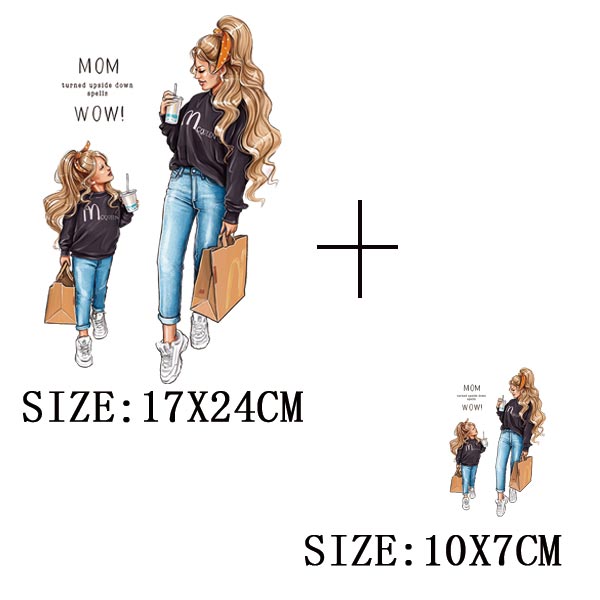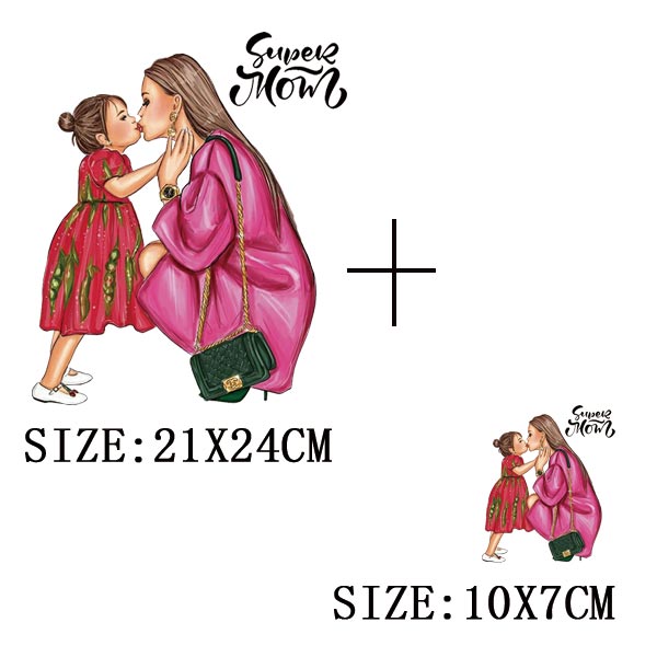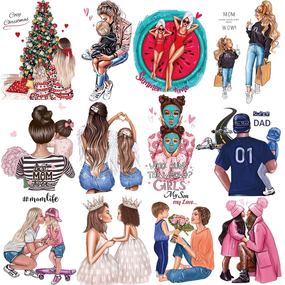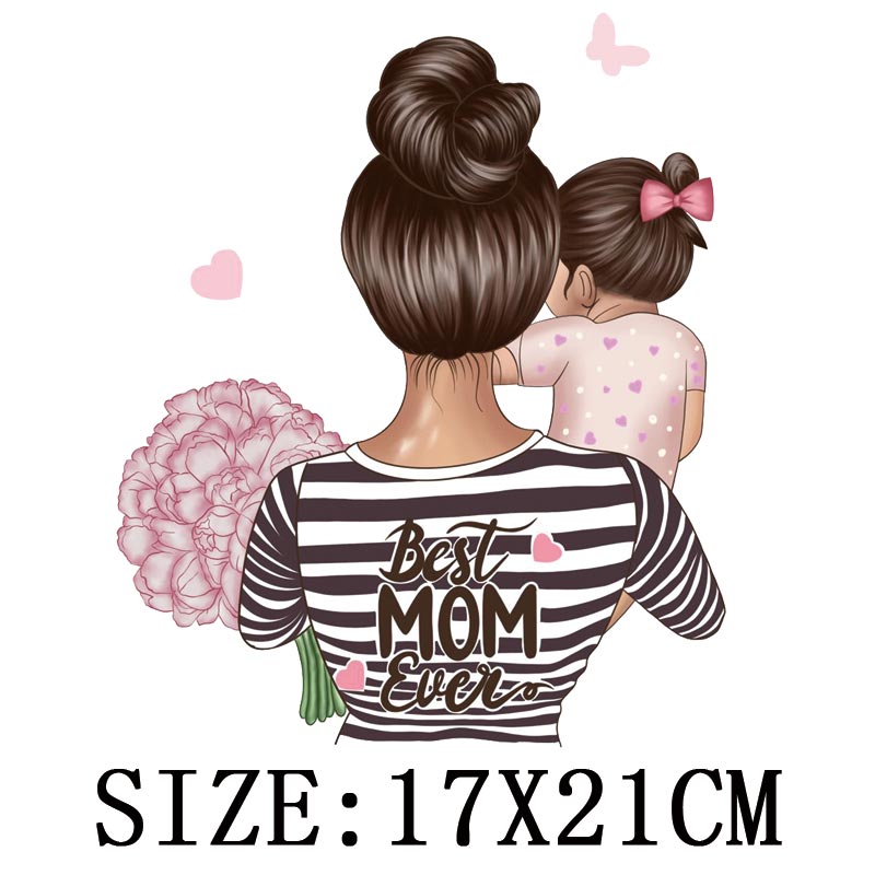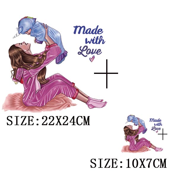 Mom&Baby Heat Sticker On T-shirt DIY Washable Iron On Transfer For Clothing Lovely Design On Clothes Patches Applique Decoration