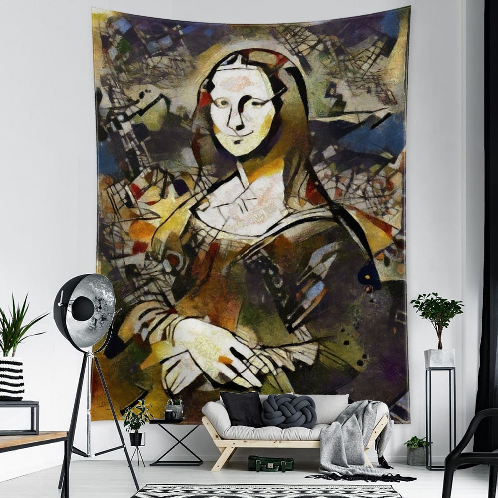 Mona Lisa Graffiti Tapestry Wall Hanging Boho Style Psychedelic Witchcraft Hippie Tapiz Bedroom Art Home Decor