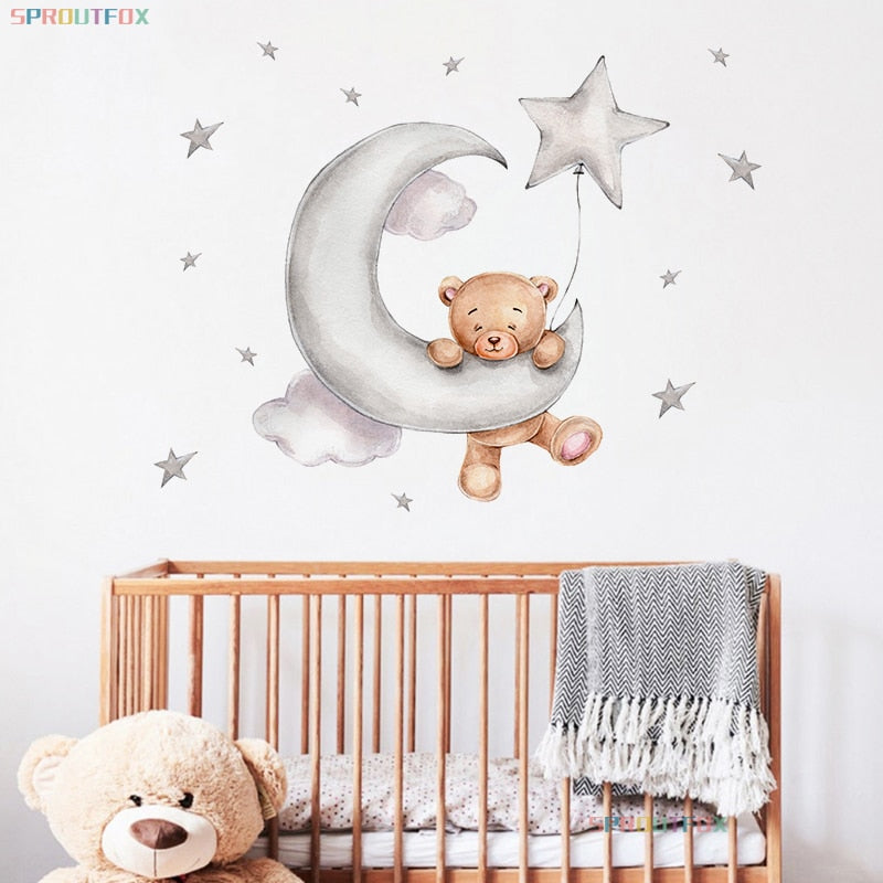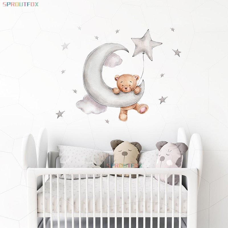 Moon Cloud Big Wall Stickers For Kids Rooms Boys Stars Large Wall Stickers For Children's Room Bear Bedroom Decoration