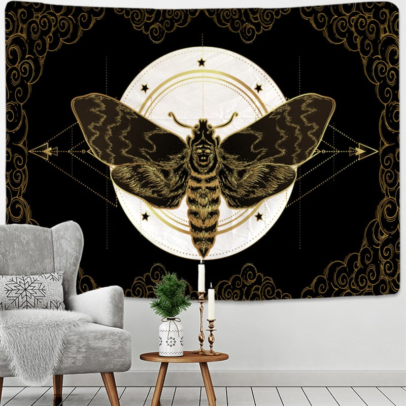 Moon Phase Moth Tapestry Wall Hanging Bohemian Style Witchcraft Psychedelic Dark Universe Living Room Home Decor