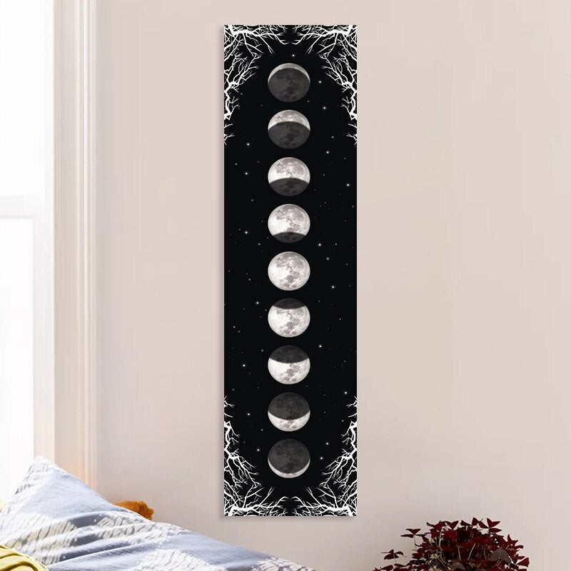 Moon Phase Tapestry Black and White starry sky Wall Hanging Moon Throw Blanket Home Decor Wall Hanging Bohemian Wall Cloth Mural