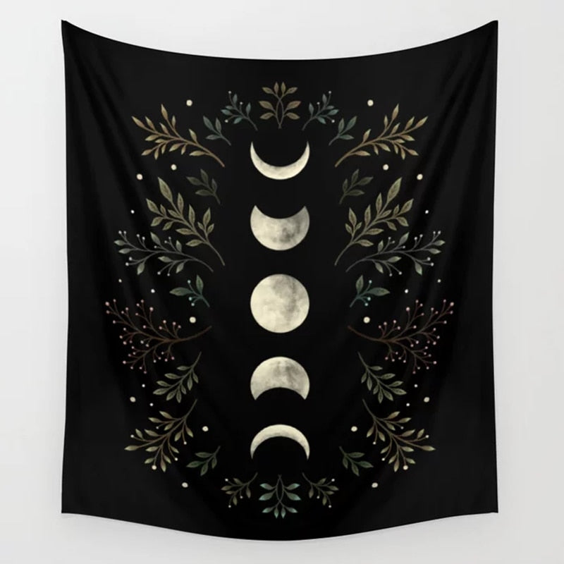Moon Phase Tapestry Wall Hanging Vintage Mooonlight Green Olive Leaf Black Tapestries Boho Room Wall Decor Home Decoration Wall