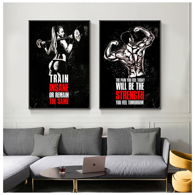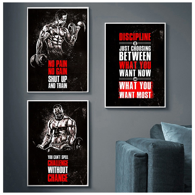 Muscle Bodybuilding Fitness Motivational Quotes Art Canvas Painting Poster Wall Picture Print for Home Gym Office Decor