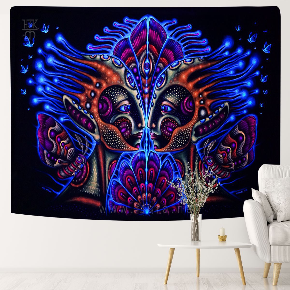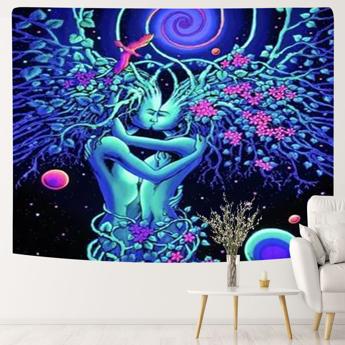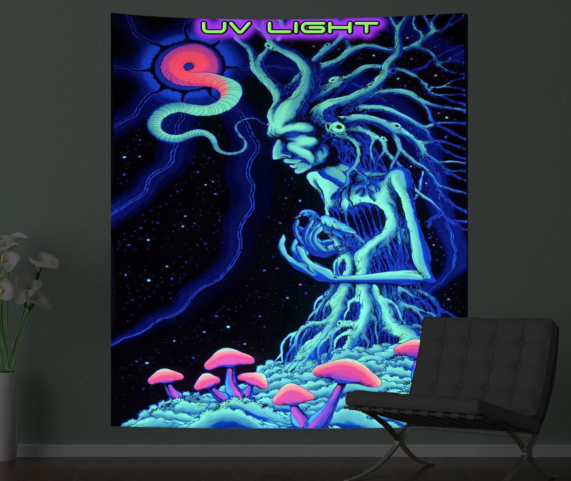 Mushroom Psychedelic Fluorescence Tapestry Wall Hanging Cloth Bedroom Decor Psychedelic Art Poster Glow Under Ultraviolet Light