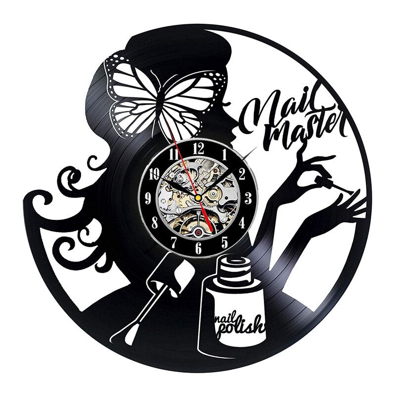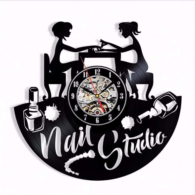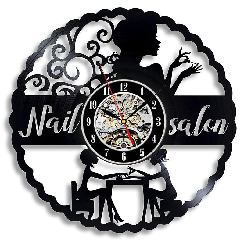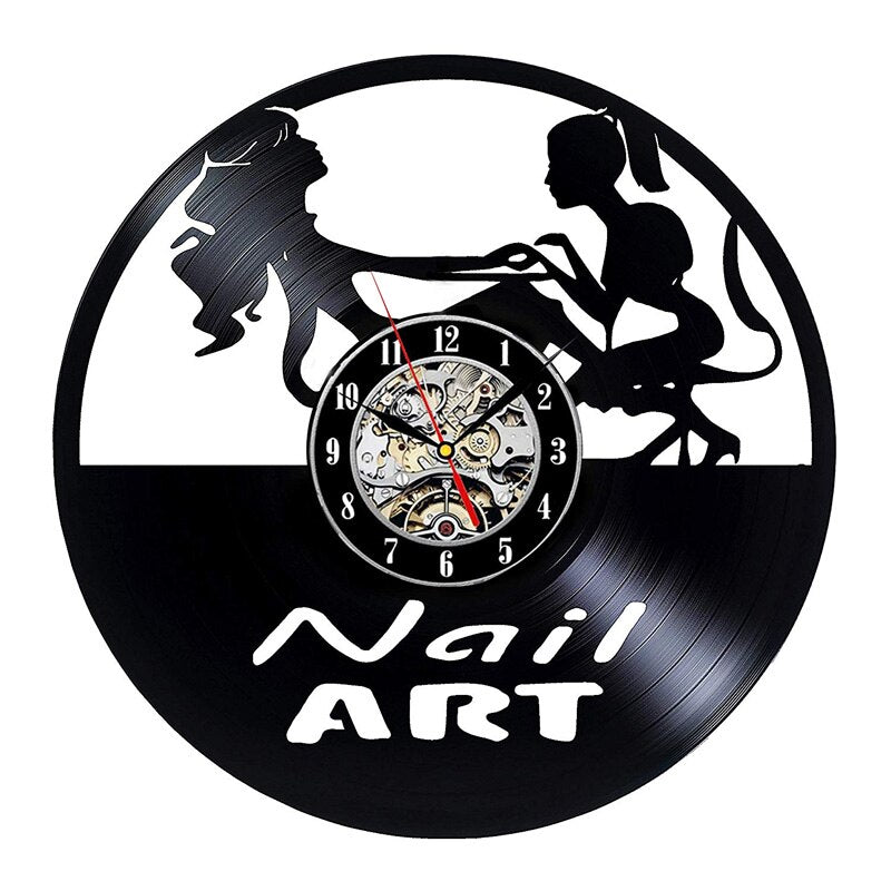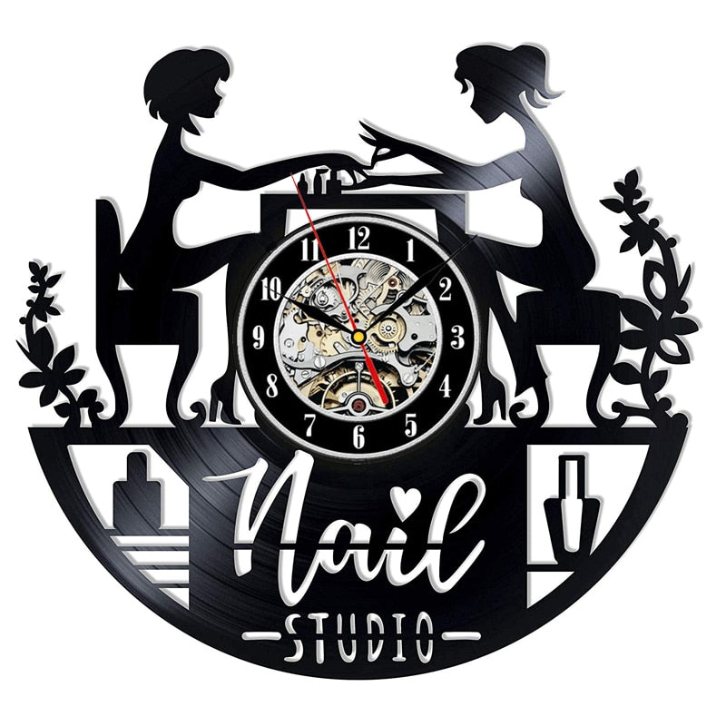 Nail Salon Vinyl Record Wall Clock Modern Design Nail Art Manicure Studio Vinyl Clocks Wall Watch Beauty Salon Wall Sign Decor