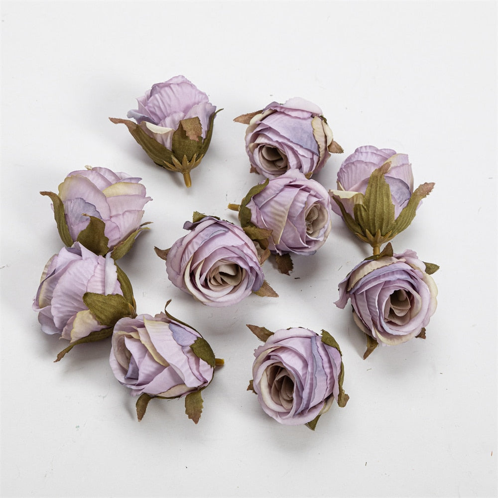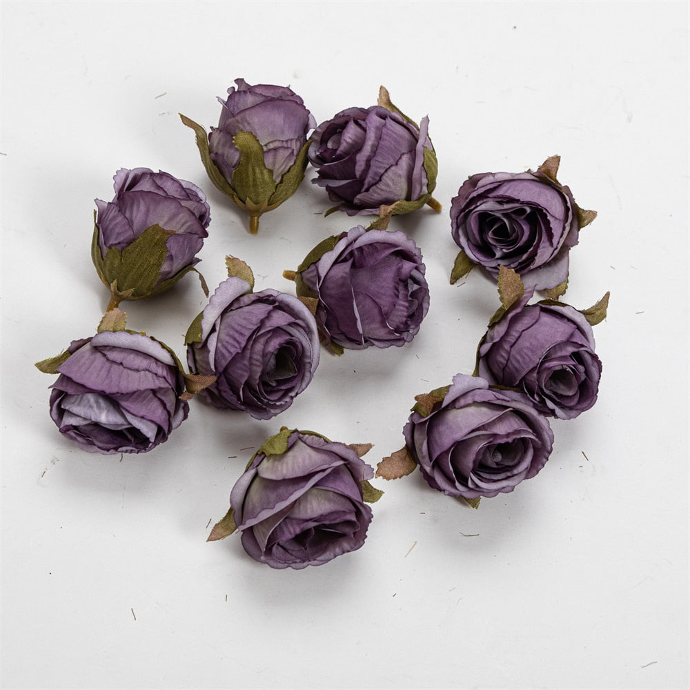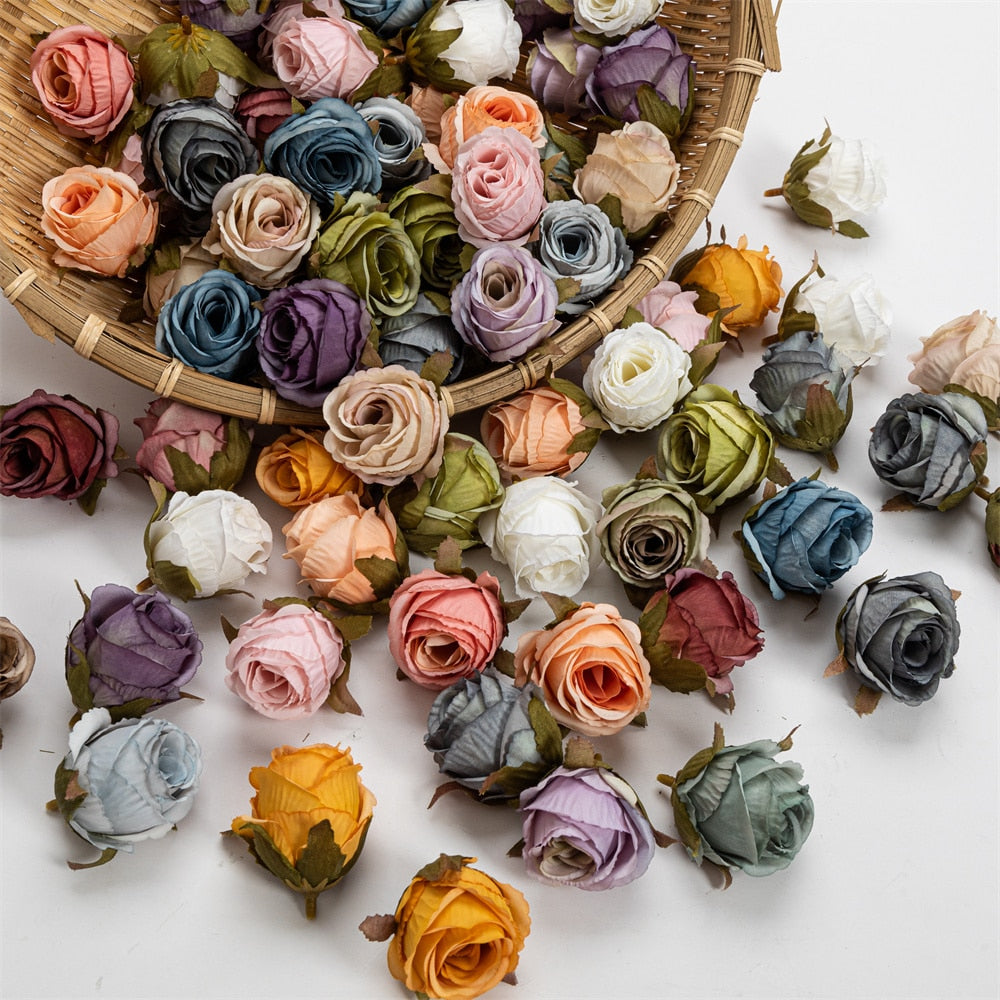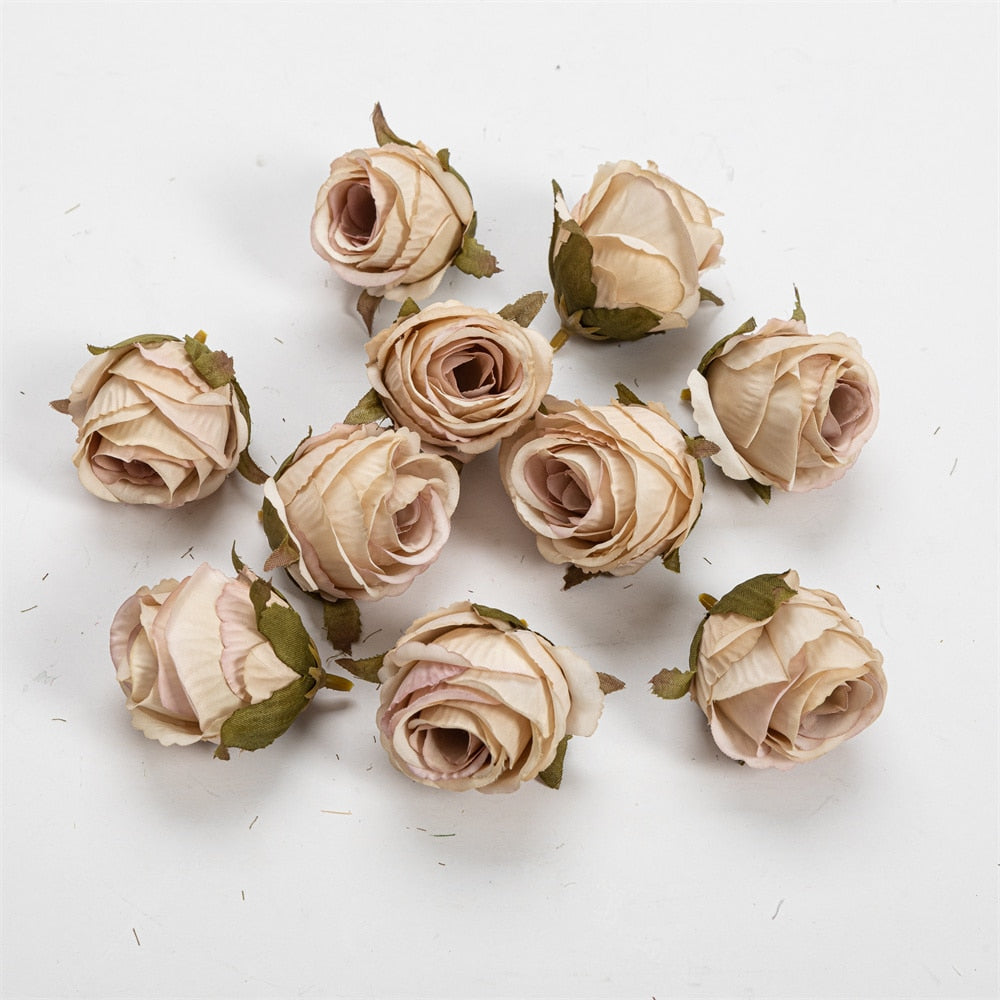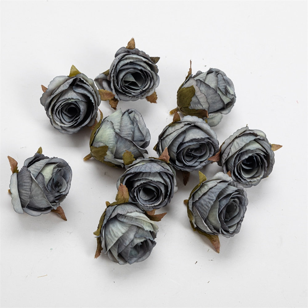 Nanairo 10pcs 3.5cm Retro Artificial Canvas Rose Flower Head Home Wedding Party Decora Christmas Craft Accessories Fake Flowers