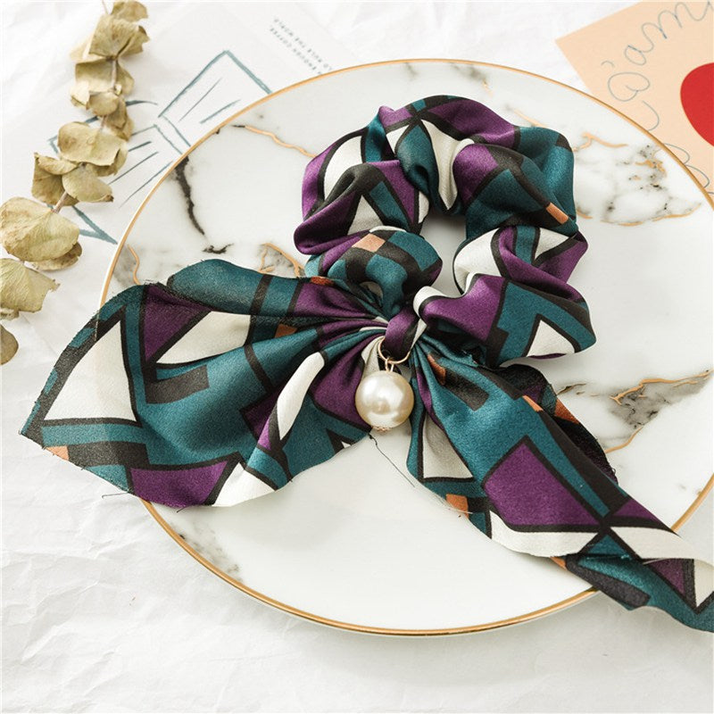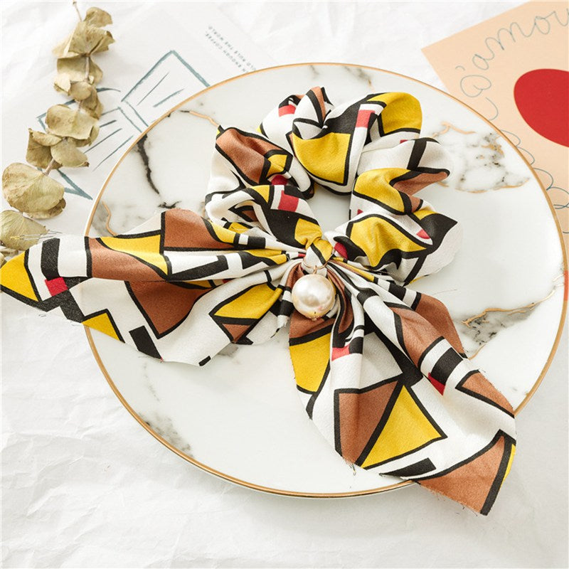 New Chiffon Bowknot Silk Hair Scrunchies Women Pearl Ponytail Holder Hair Tie Hair Rope Rubber Bands Headwear Hair Accessories