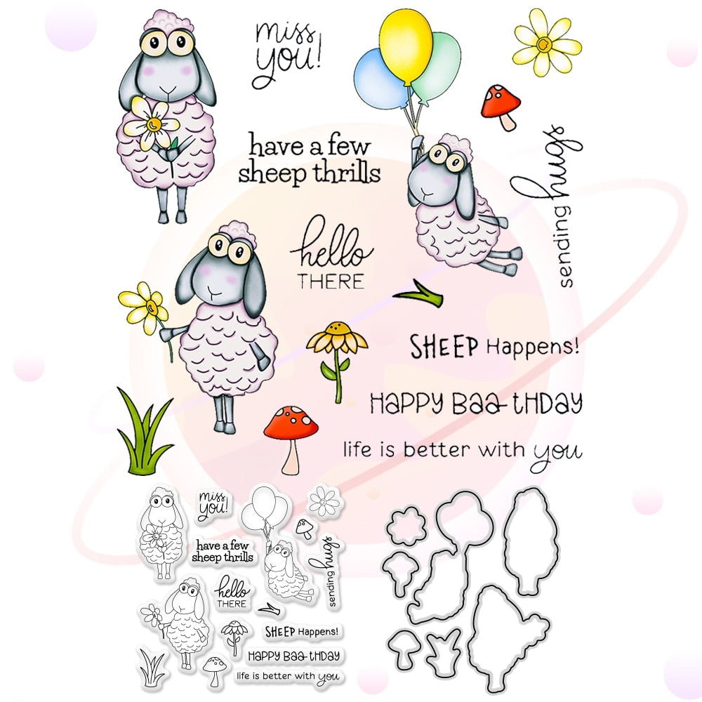New Flower Sheep Metal Cutting Dies and Clear Stamp Template for DIY Scrapbooking Photo Album Craft Paper Card Making Decorative