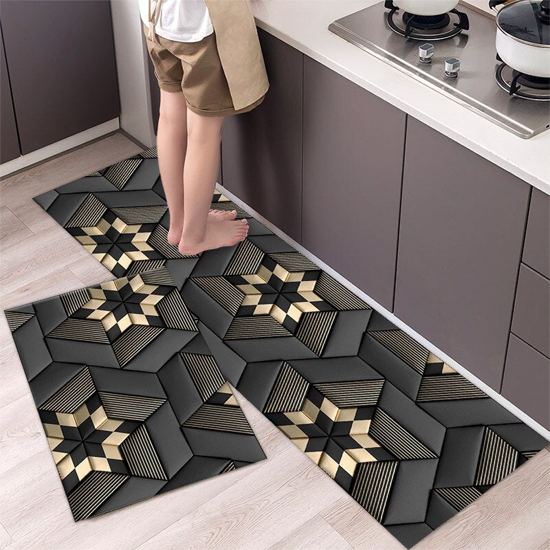 New Geometric Kitchen Mat Home Light Luxury Entrance Doormat Living Room Sofa Floor Long Mats Bathroom Door Anti-Slip Floormat