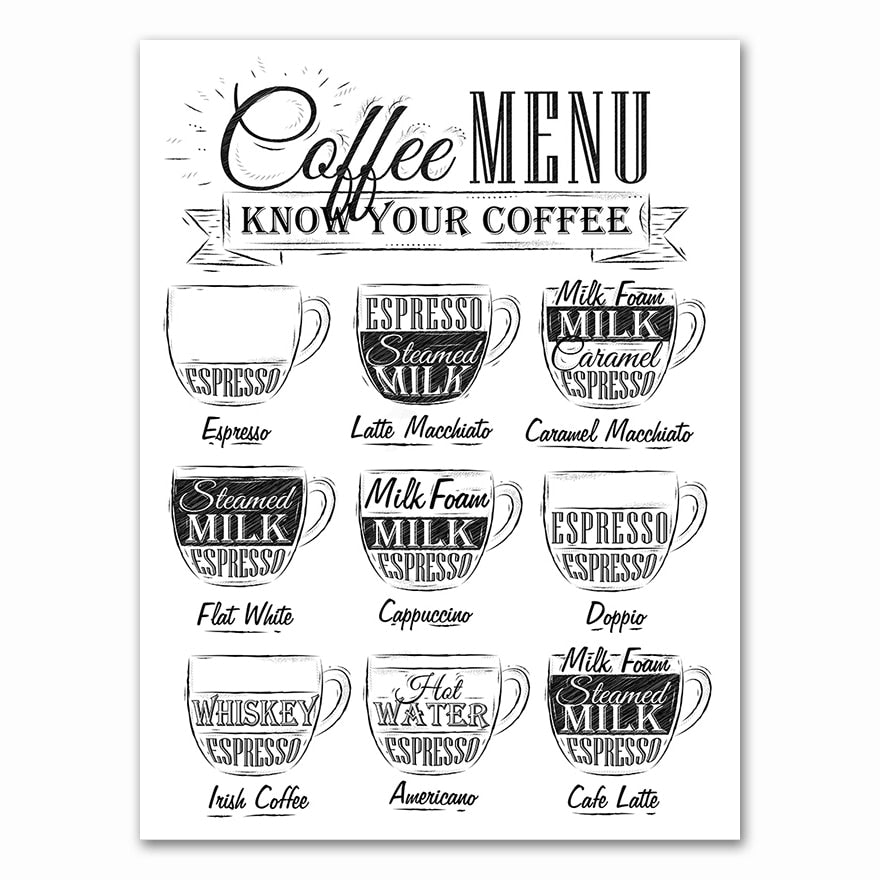 Nordic Coffee Menu Wall Pictures Art Print Black White Art Canvas Painting Cafe Shop  Wall Art Decor HD2616