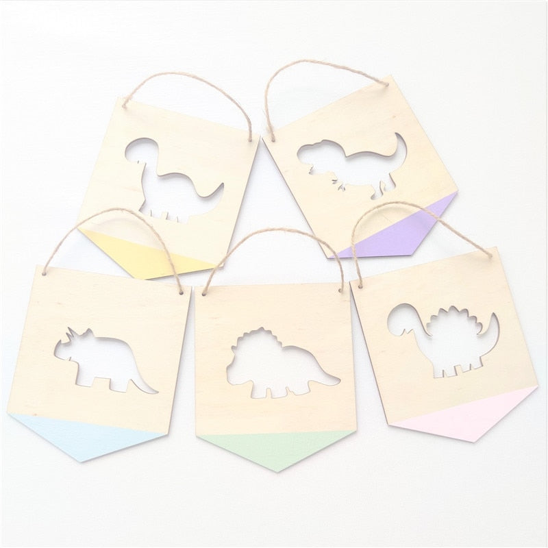 Nordic Dinosaur Wood Chip Positive Slogan Banner Garland Kids Room Decorations Wall Hanging Ornament Nursery Decor Photo Props
