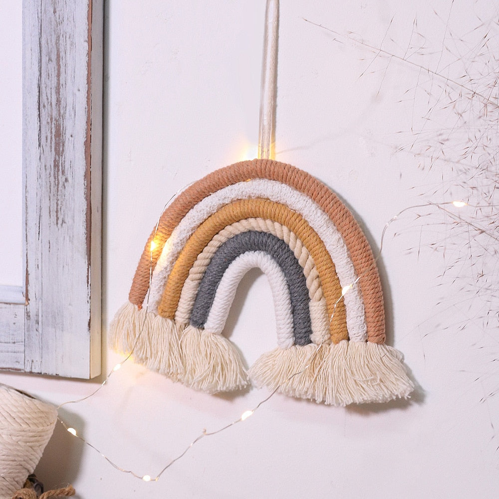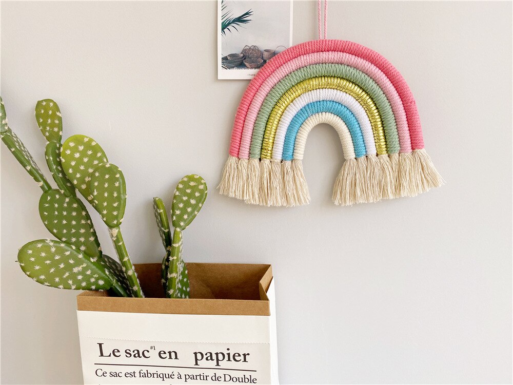 Nordic Handmade Woven Macrame Rainbow Wall Hanging Decorative Home Boho Decor Rainbow Birthday Party Decorations Kids Baby Room