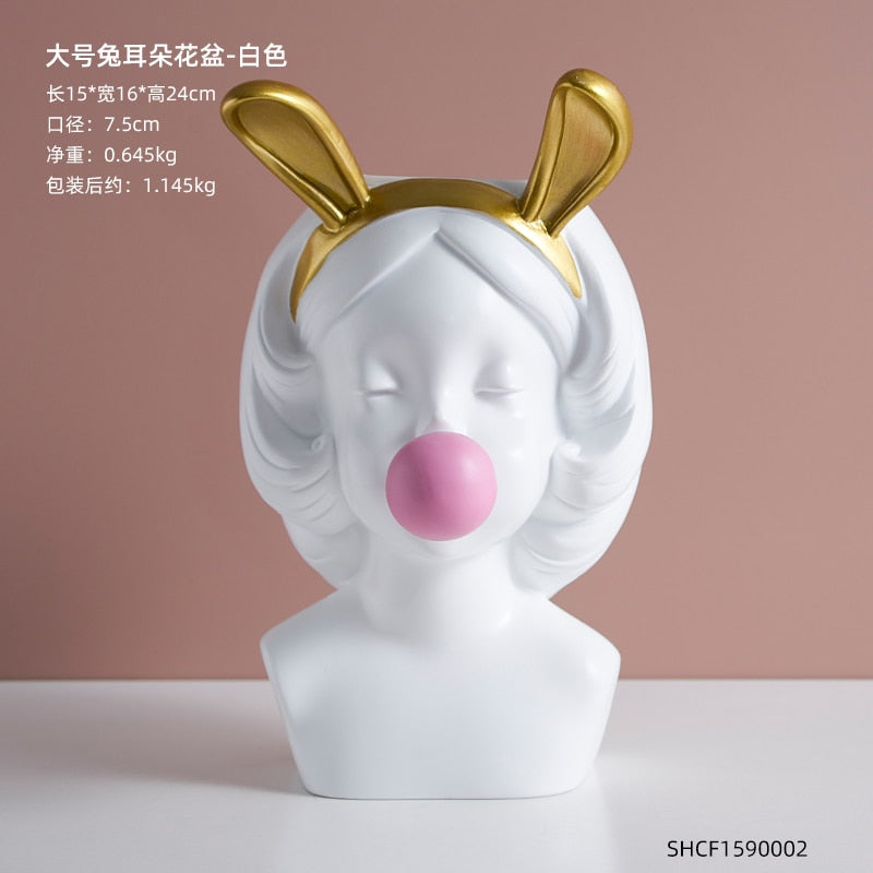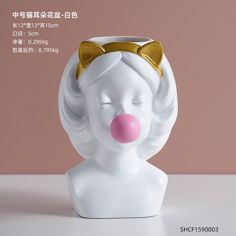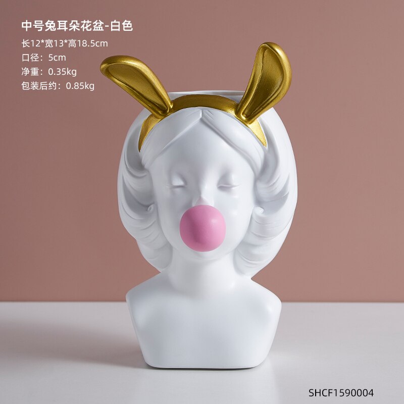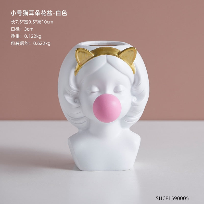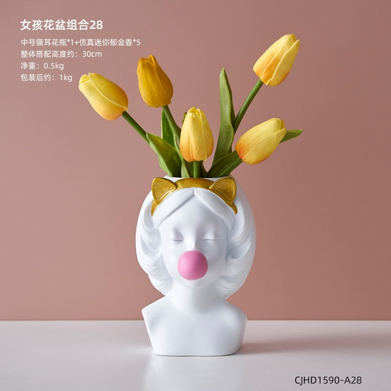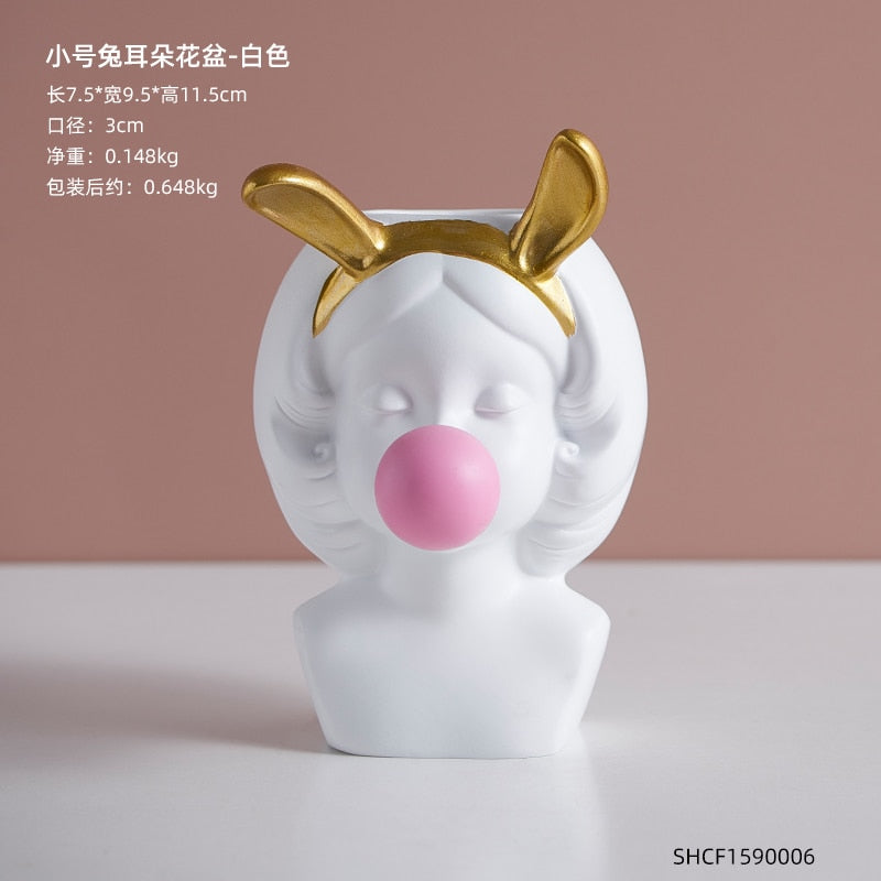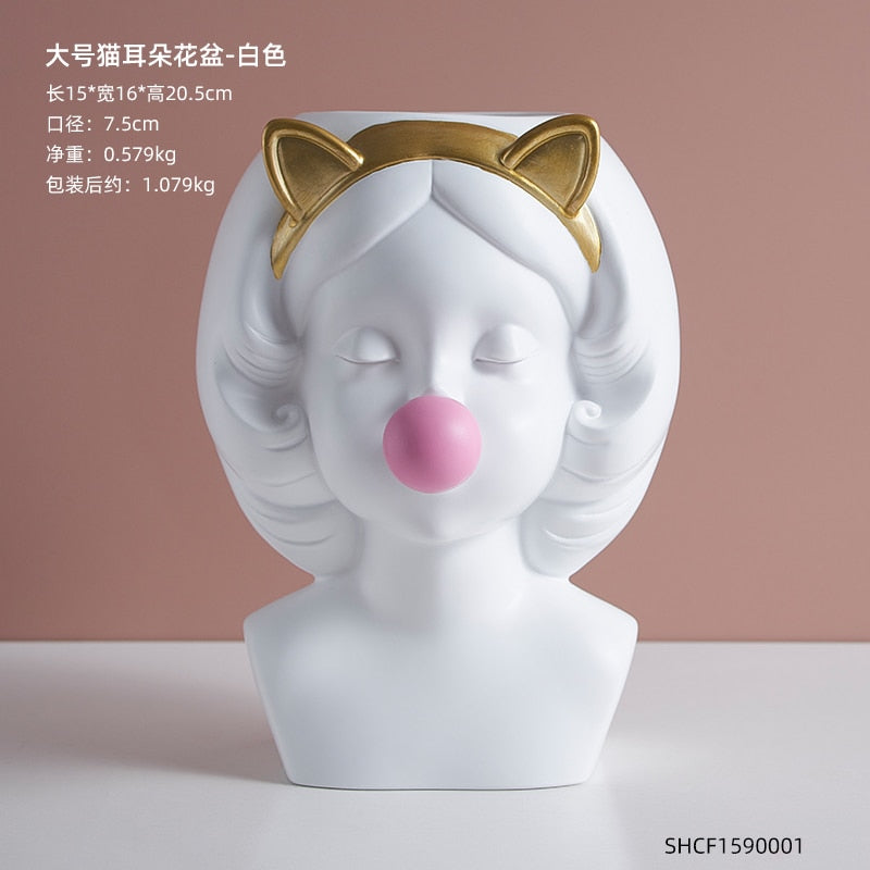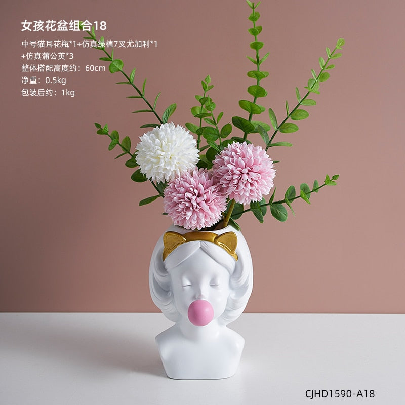 Nordic style girl flower pot plant resin flower pot rabbit ear/cat ear girl potted modern living room decoration decoration gift