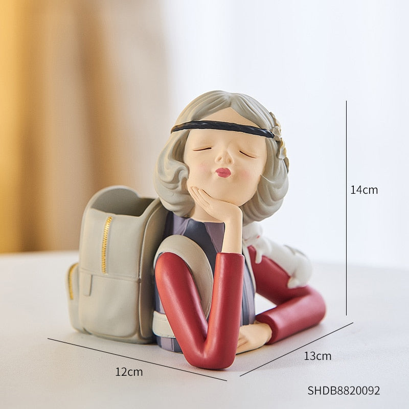Pen Holder Stationery Resin Character Girl Sculpture Modern Home Decoration Study Room Children's Bedroom Desktop Decoration