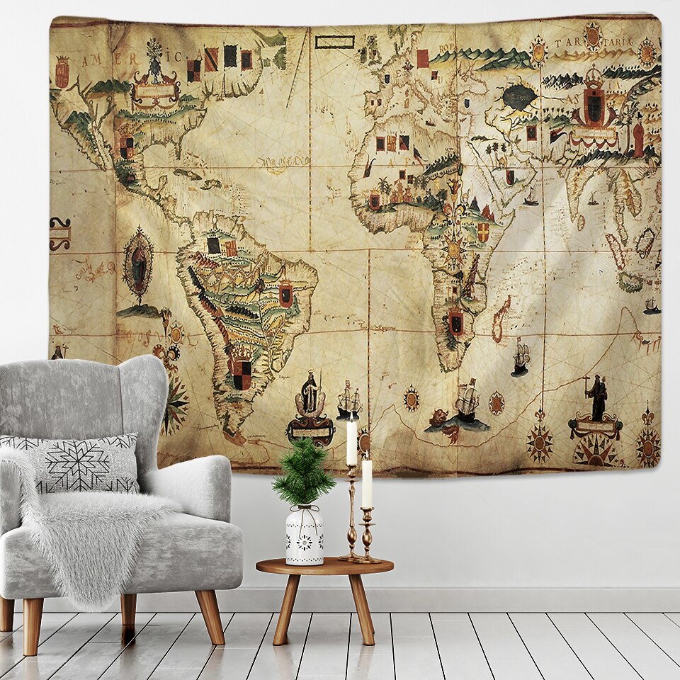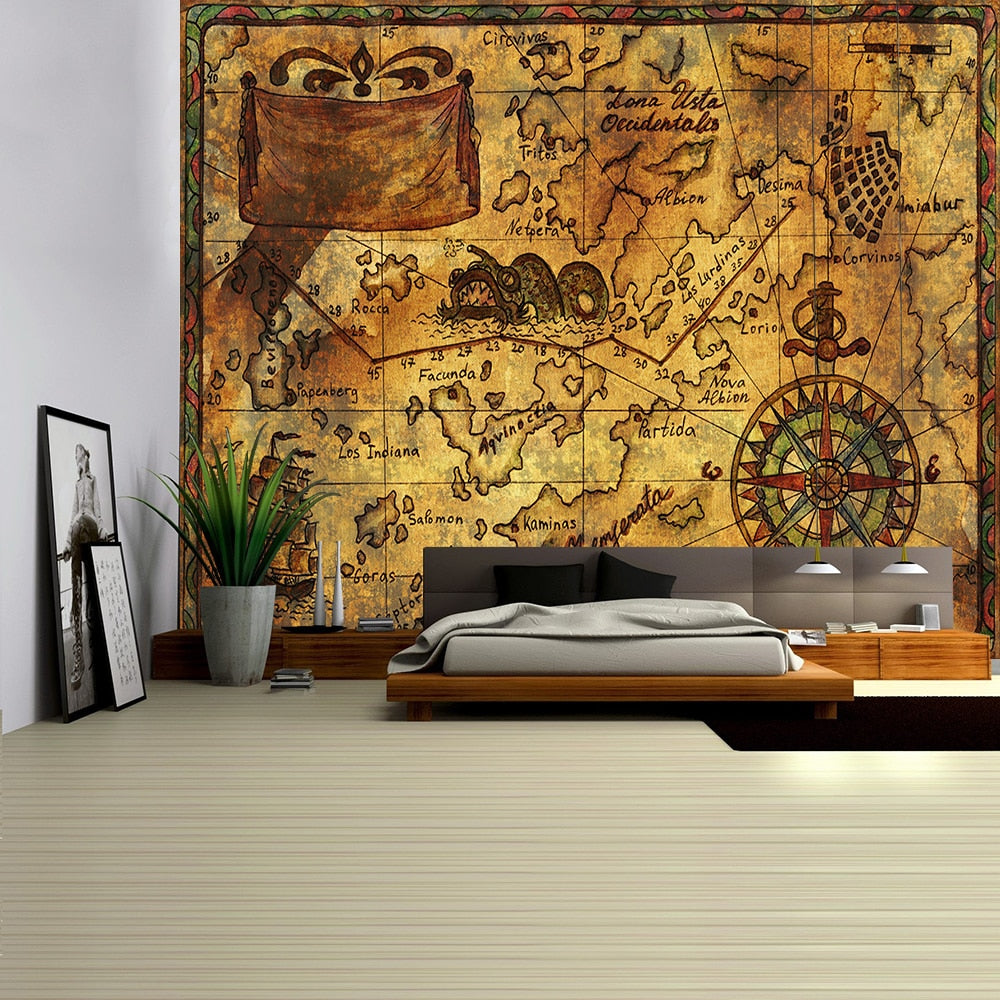 Pirate Treasure Map Tapestry Wall Hanging Bohemian Beach Mat Polyester Thin Blanket Yoga Shawl Mat Blanket New