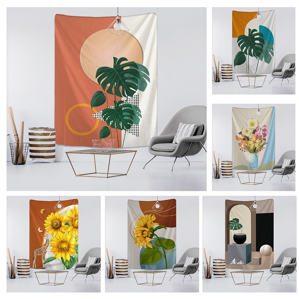 Plant Oil Painting Tapestry Wall Hanging Bohemian Hippie Witchcraft Mural Dormitory Study Aesthetics Room Home Decor