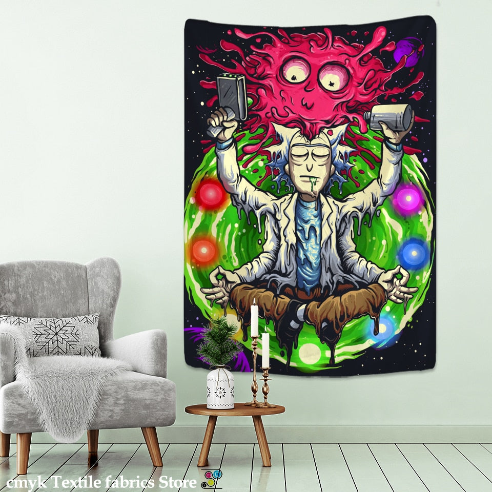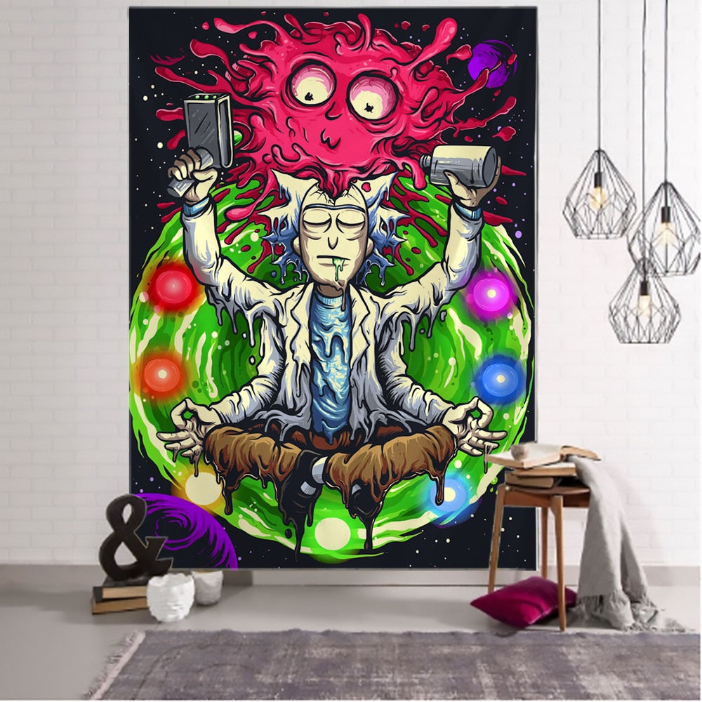 Psychedelic Meditator Tapestry Wall Hanging Cartoon Witchcraft Bohemian Style Mandala Kawaii Room Home Decor