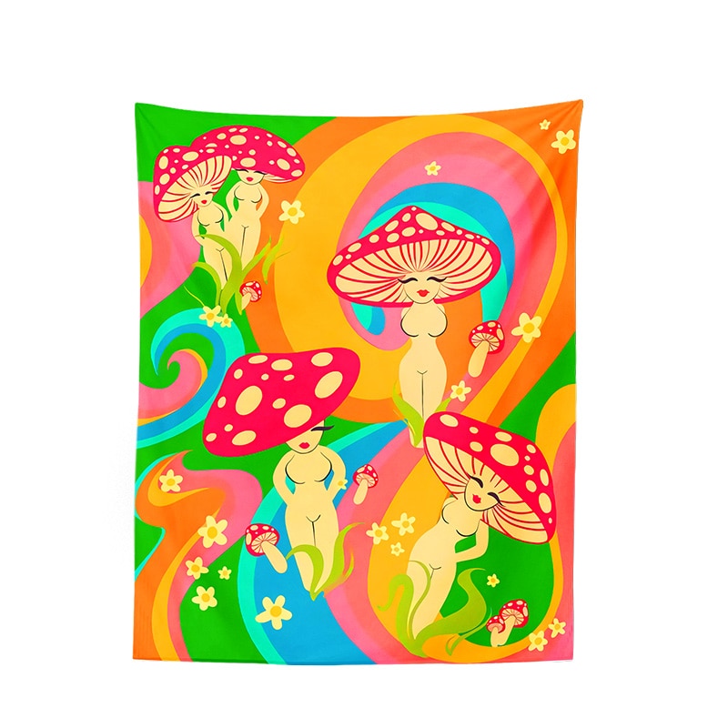Psychedelic Mushroom girl Tapestry Wall Hanging Mushrooms Tapestries Bohemian Style Gypsy Hippie Mattress Tapestry Decor