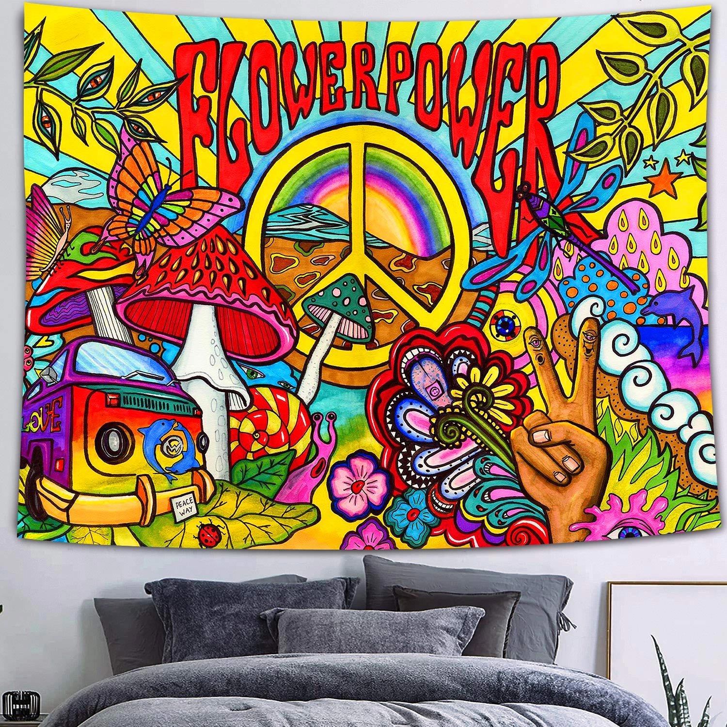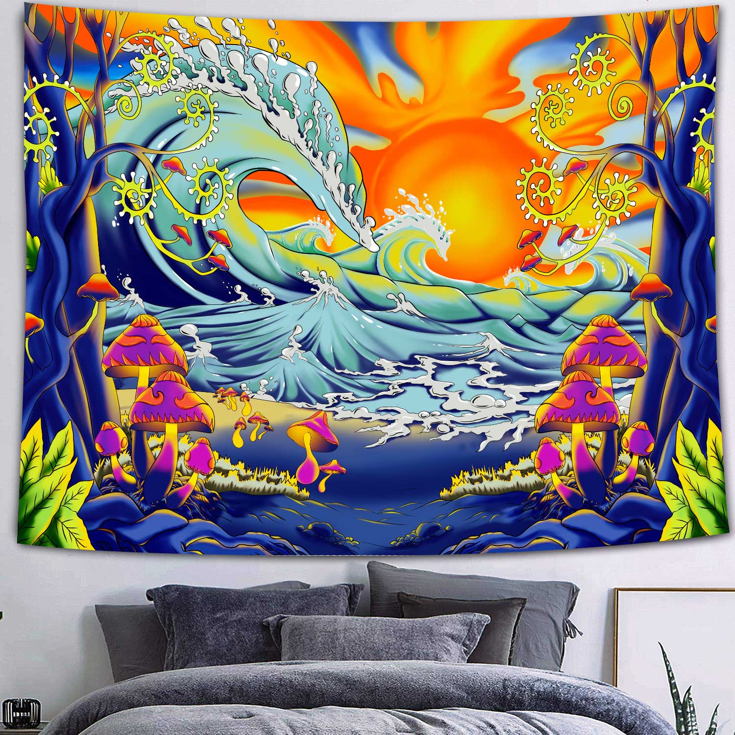 Psychedelic Wall Decor Indian Mandala Tapestry Hippie Dazzling Landscape Wall Hanging Blanket Bohemia Abstract Trippy Bedspread