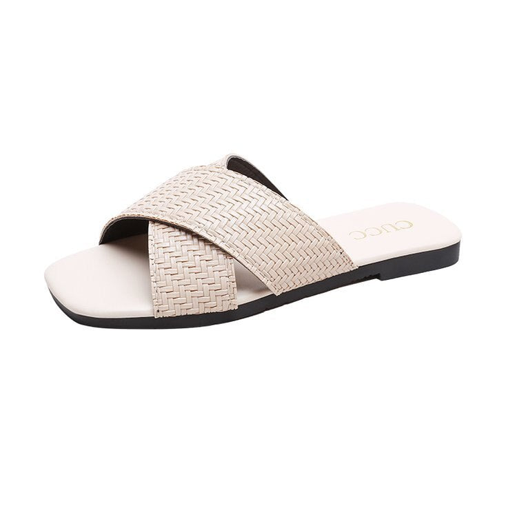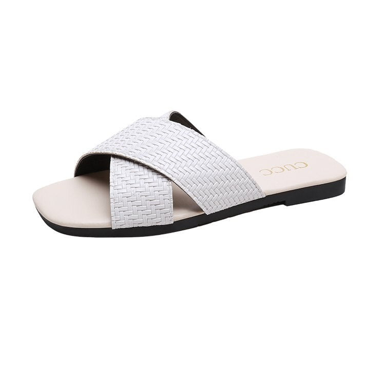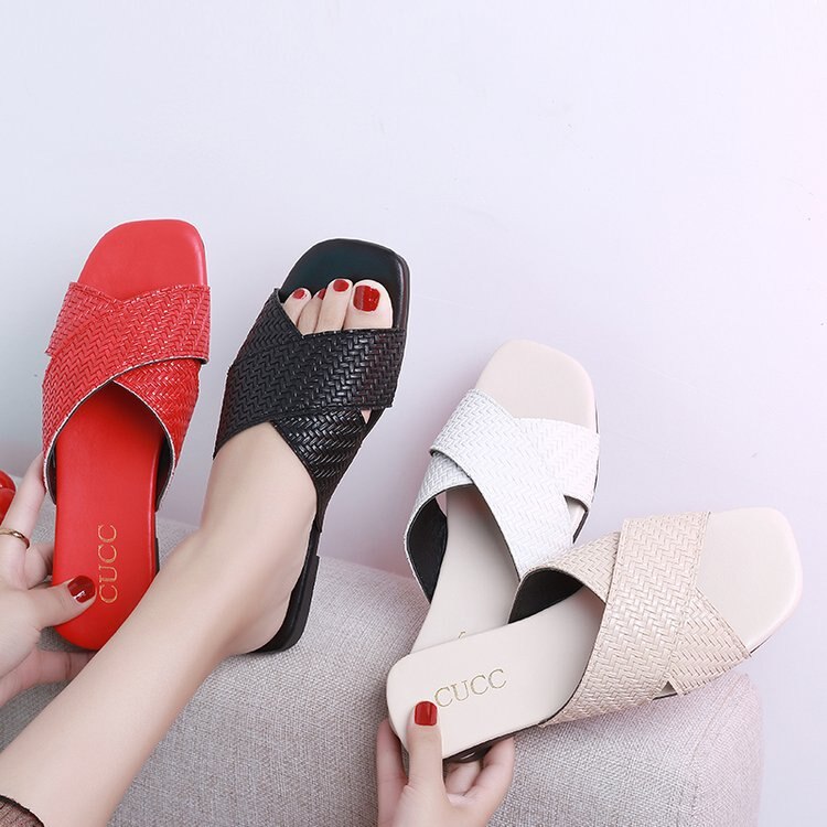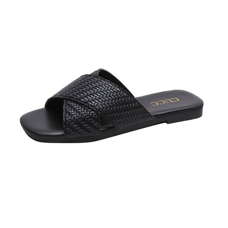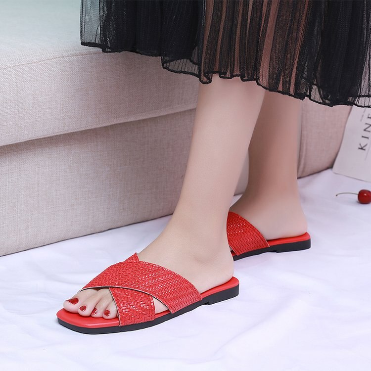 Pu Leather Summer Women Slippers Female Slides Women Flat Summers Shoes Solid Ladies Flip Flops Plus Size