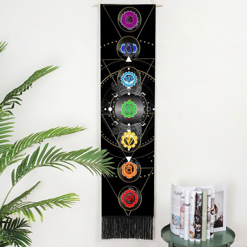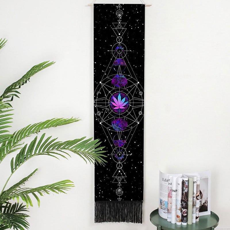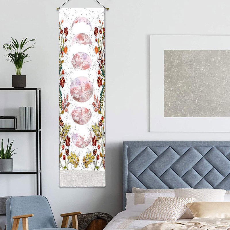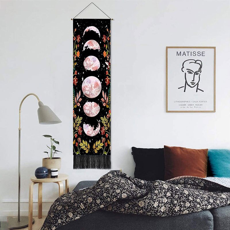 Rectangular Bohemia Wall Hanging Snake Tassel Tapestry Black Moon Wall Background Blanket Home Livingroom Office Wall Decoration