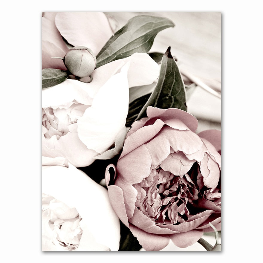 Scandinavian Pink White Flower Leaf Plant Poster Nordic Botanical Print Canvas Painting Wall Art Decoration Picture Home Decor