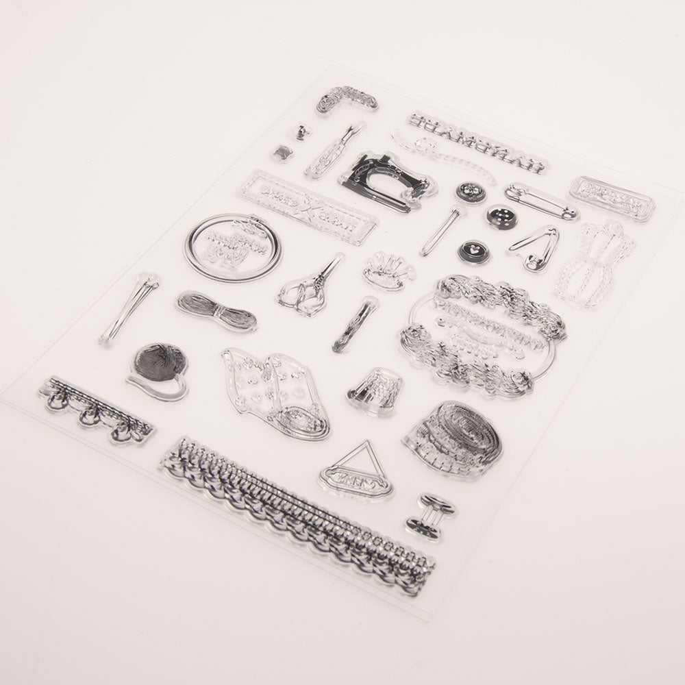 Sewing Machine Scissors Cloth Ruler Needle String Clear Stamp for Embossing Scrapbooking Craft Card Making New