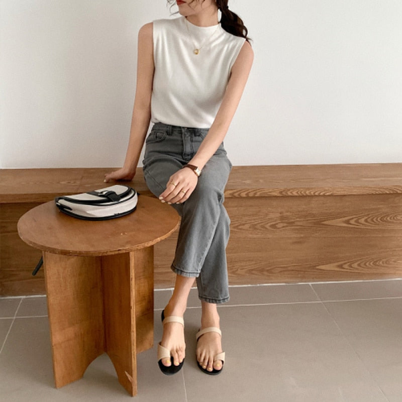Sexy Knitted Top Summer Turtleneck Tank Top Female Sleveless T-shirt Vest Casual Women Camisole Blouse Sleeveless Slim Top 13122