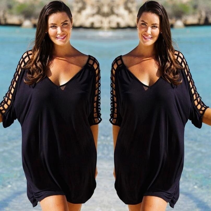 Sexy Women Summer Beach Cover Up Beachwear Sarong Hollow Out Summer Female Beach Wear Kaftan Loose Dress Plus Size