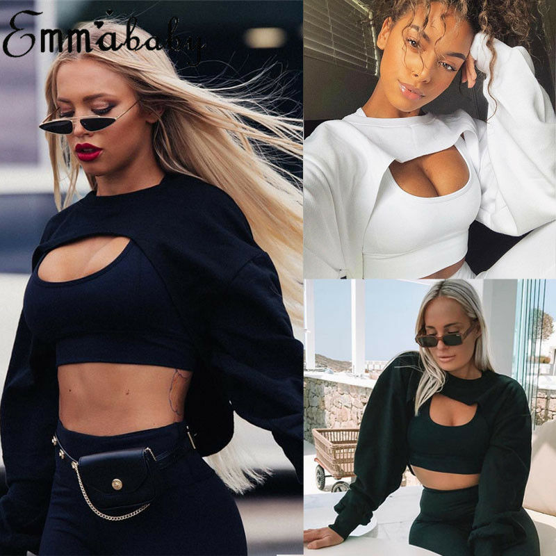 Short Sweatshirts Women Autumn Long Sleeve Black White Sweatshirt Fashion Crop Top Jacket Jumper Pullover Tops Clubwear Tank Top