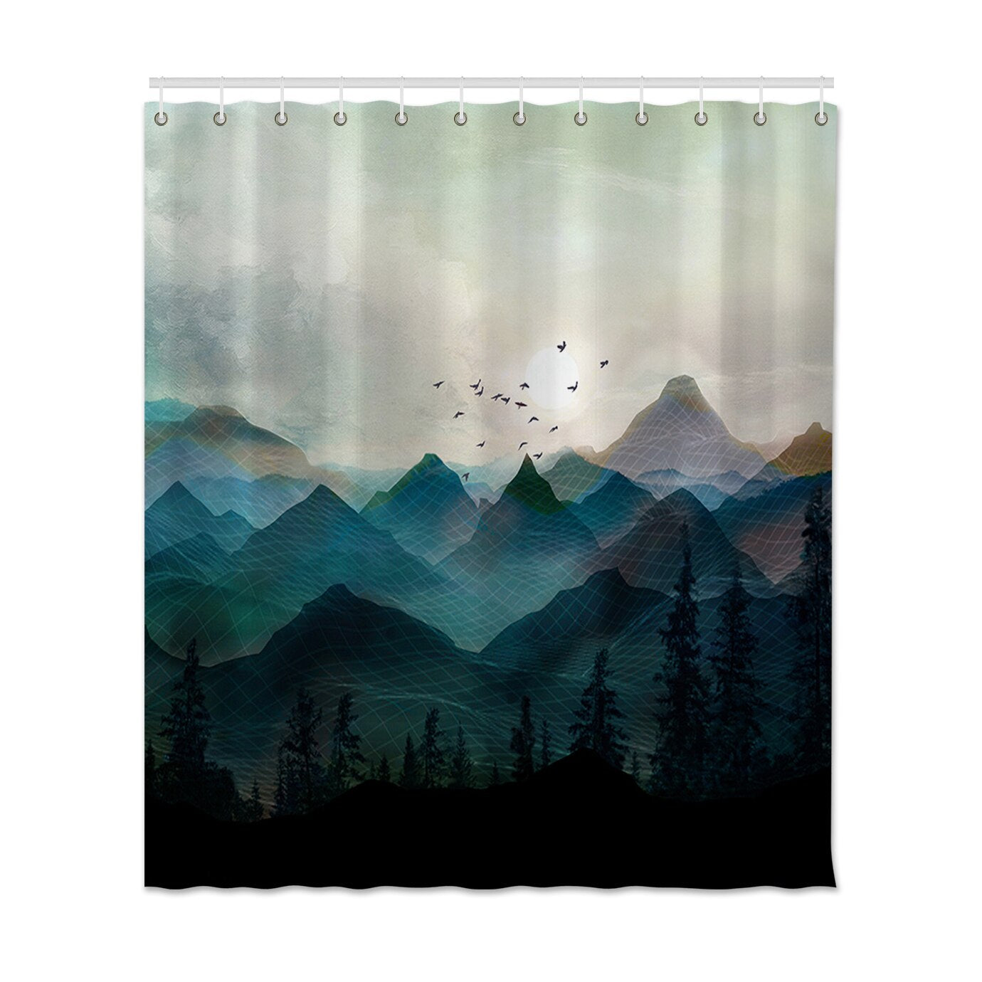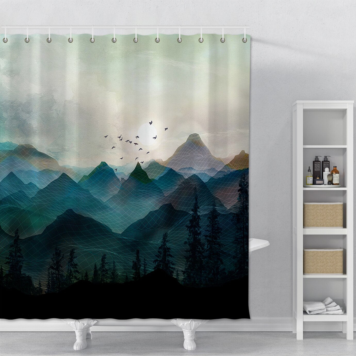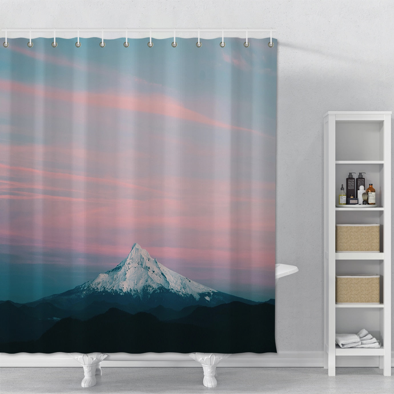 Shower Curtain Printed Mountain Pink Sky Bathroom Polyester Shower Curtain Waterproof Bathroom Shower Curtain With Hooks Decor