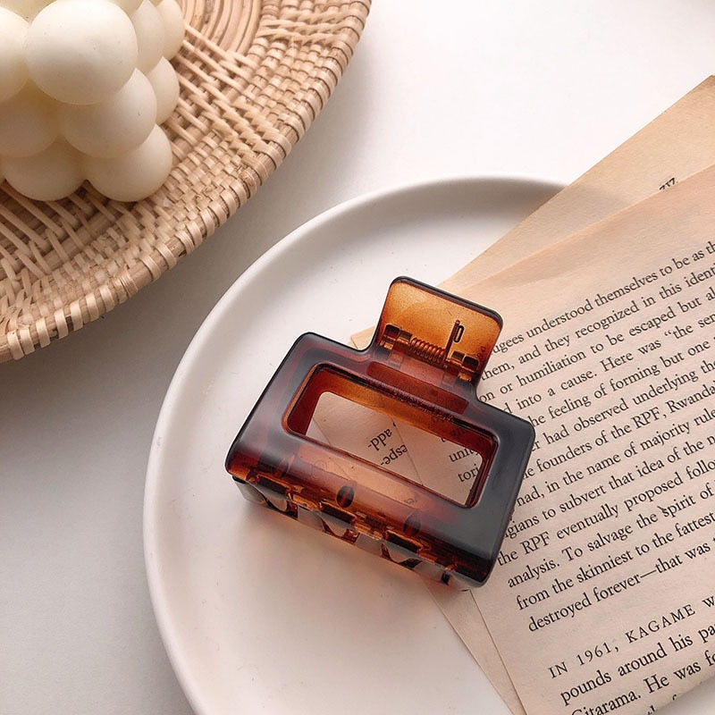 Simple Square Geometric Frosted Hair Claws Clamps Acetate Hairpins Women Hollow Out Ponytail Clips Makeup Styling Tools Headwear