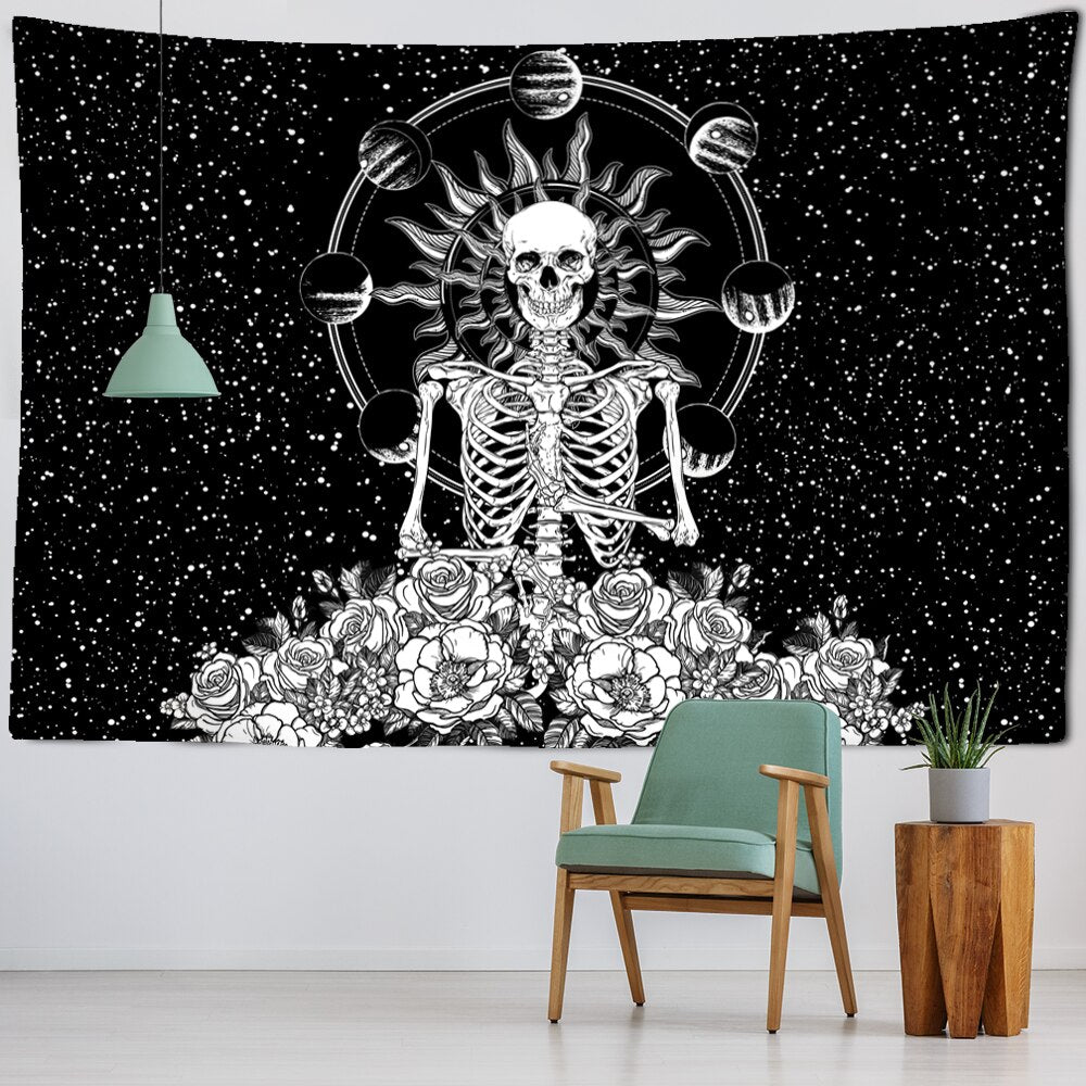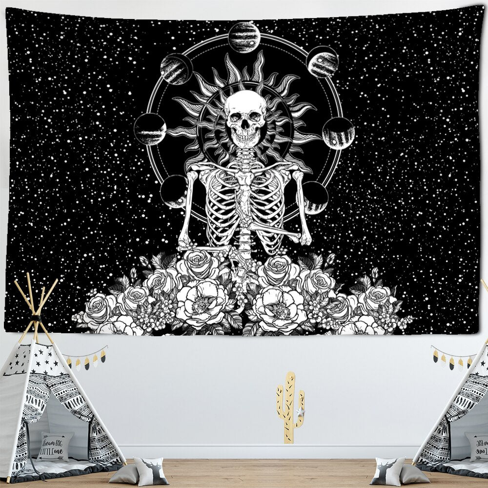 Skeleton Starry Sky Tapestry Wall Hanging Star Magic Astrology Psychedelic Polyester Carpet Bohemian Style Decor